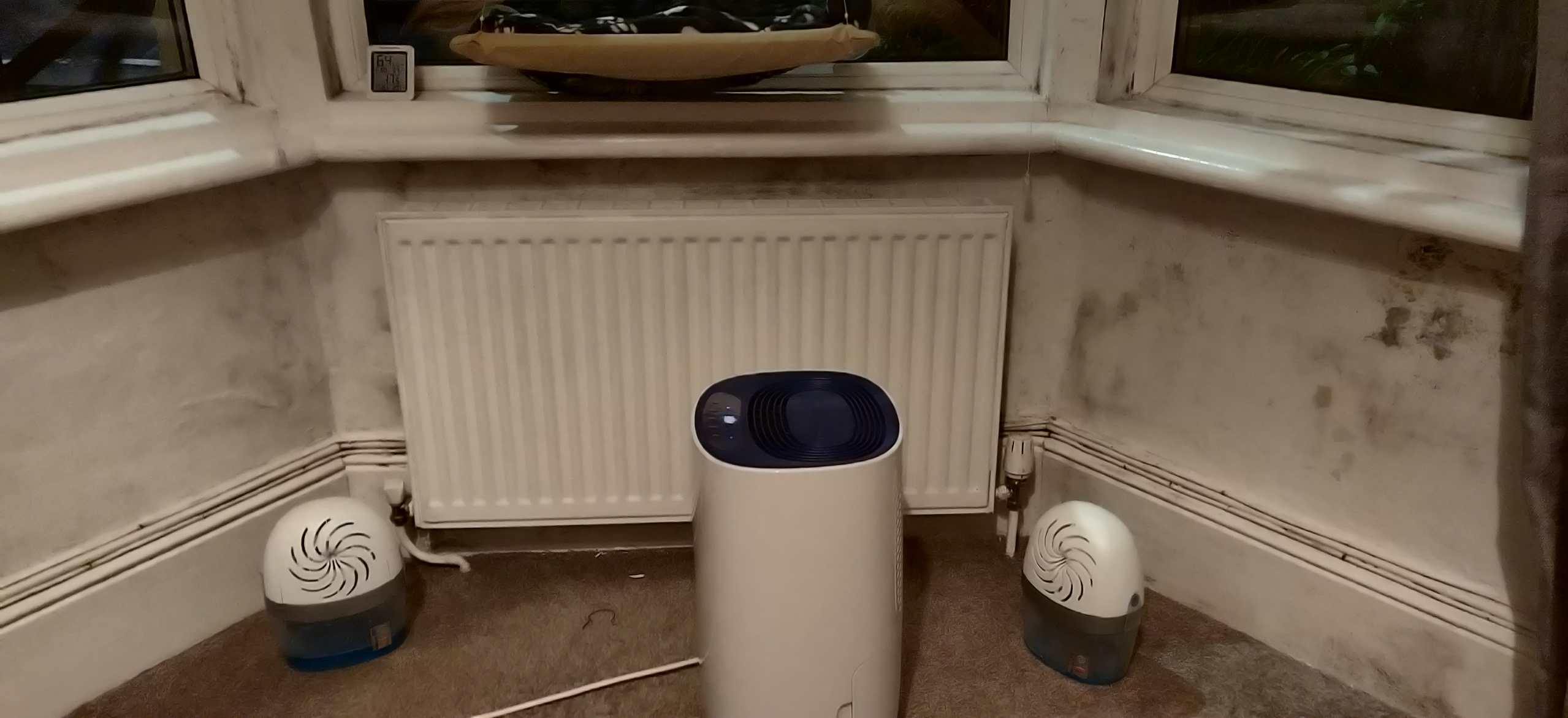 With the dehumidifier, I've had it on most of the day and it's got the humidity down to around 60% but it seems to have plateaued now (I've got thedehumidifier humidisat set to 40%). I'll see what it comes up with tonight and over night.