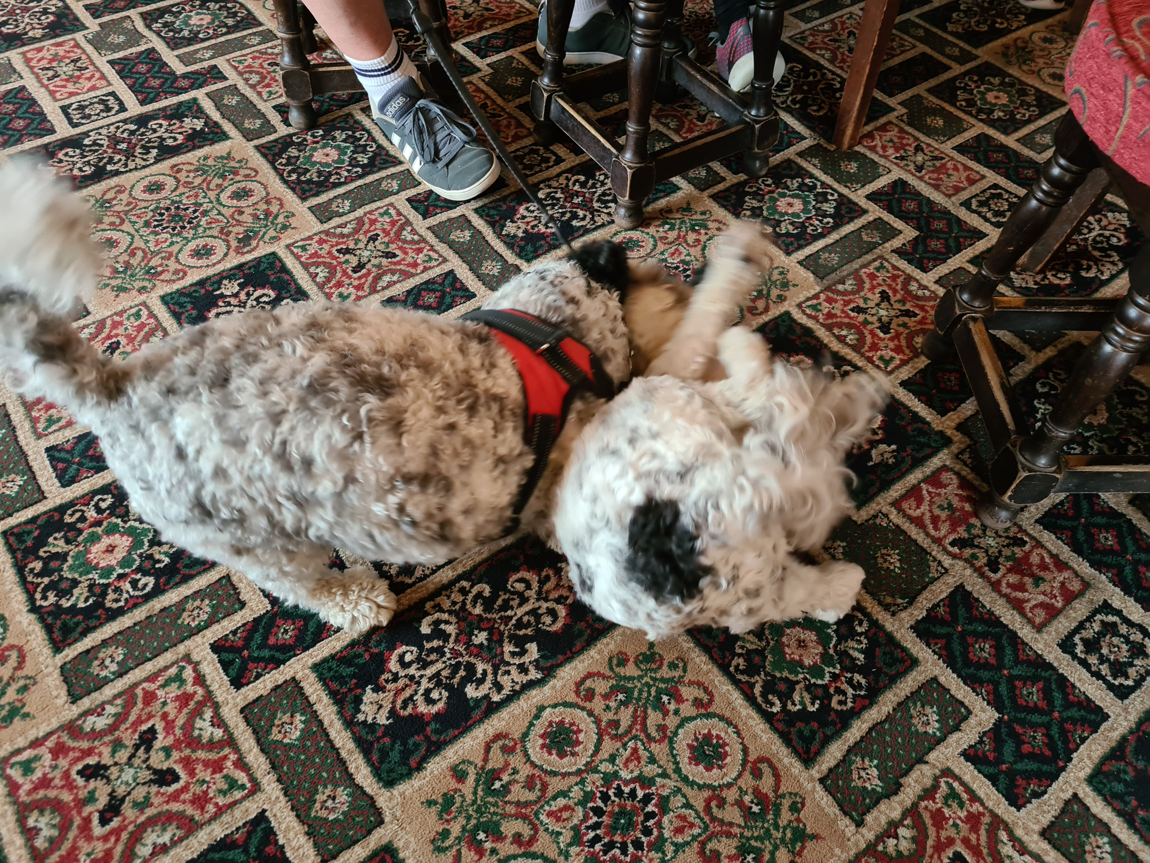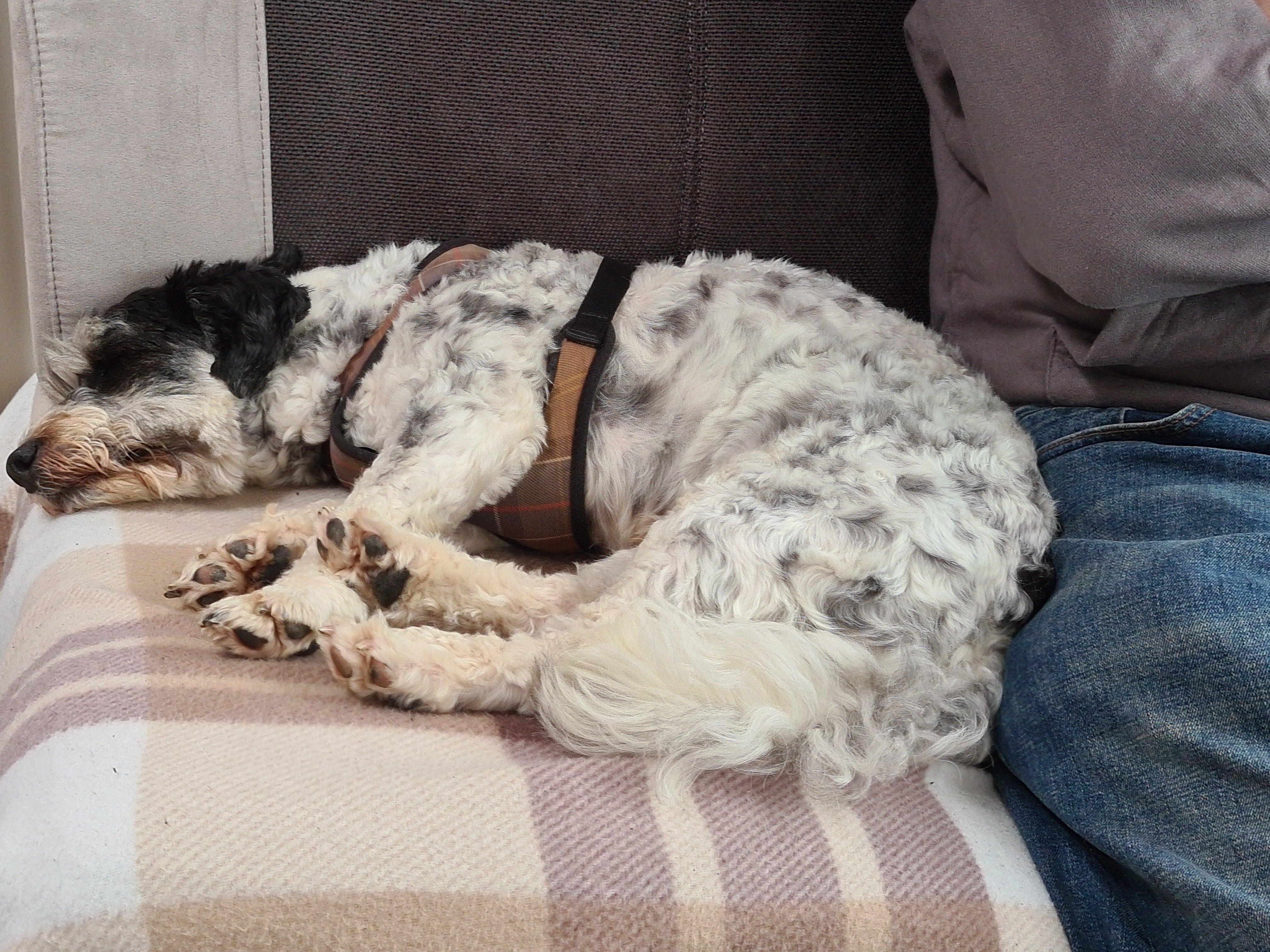 The dog is shattered. He loved his visit from his brother and they have both run each other ragged.