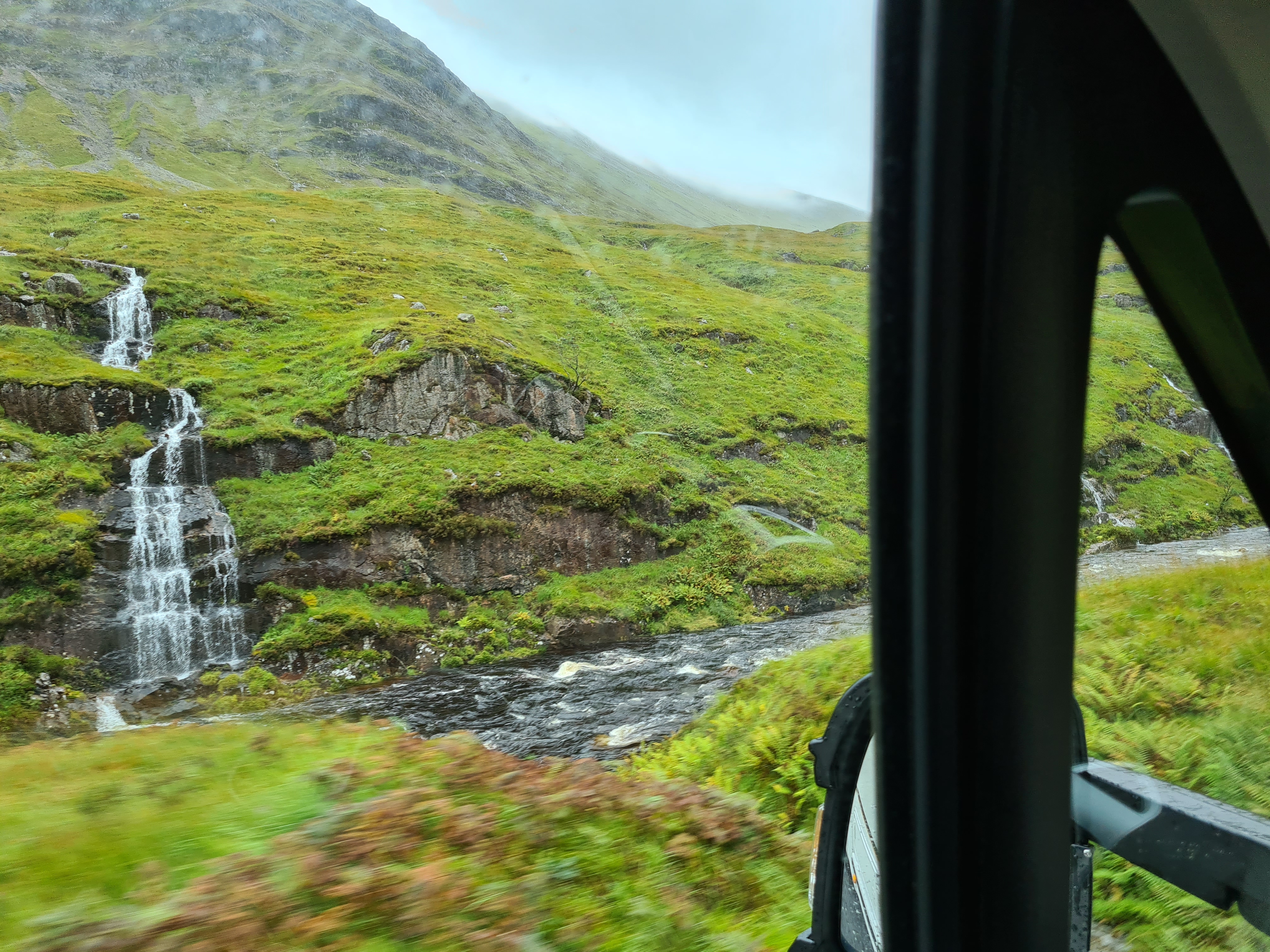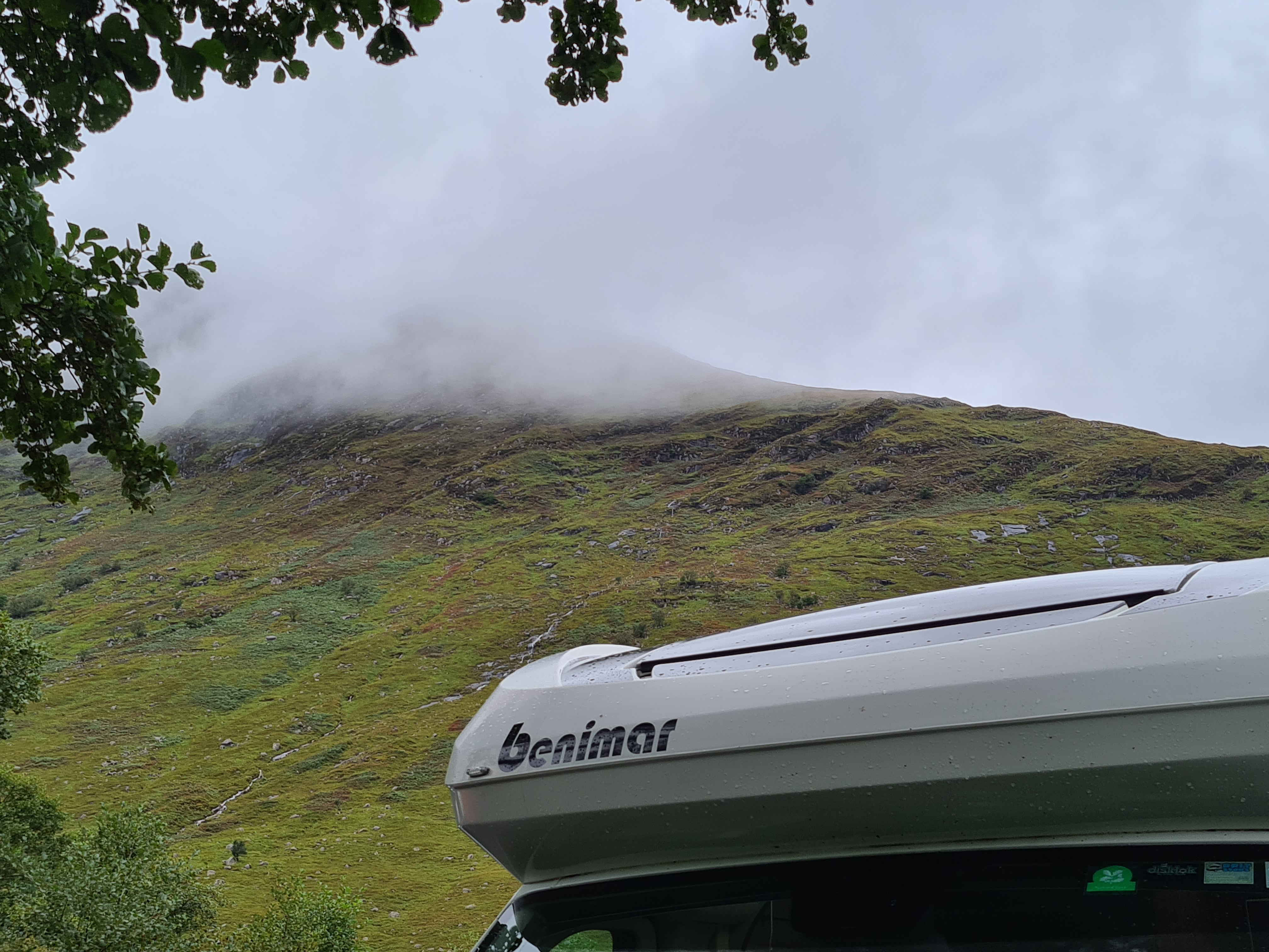 The weather has been awful today. Heavy rain pretty much all day. We got down to Glen Etive, the drive down was amazing. But with the weather so rubbish and no chance of walking we have come back out and got a few more miles done so we have a shorter drive to the ferry to Skye tomorrow.