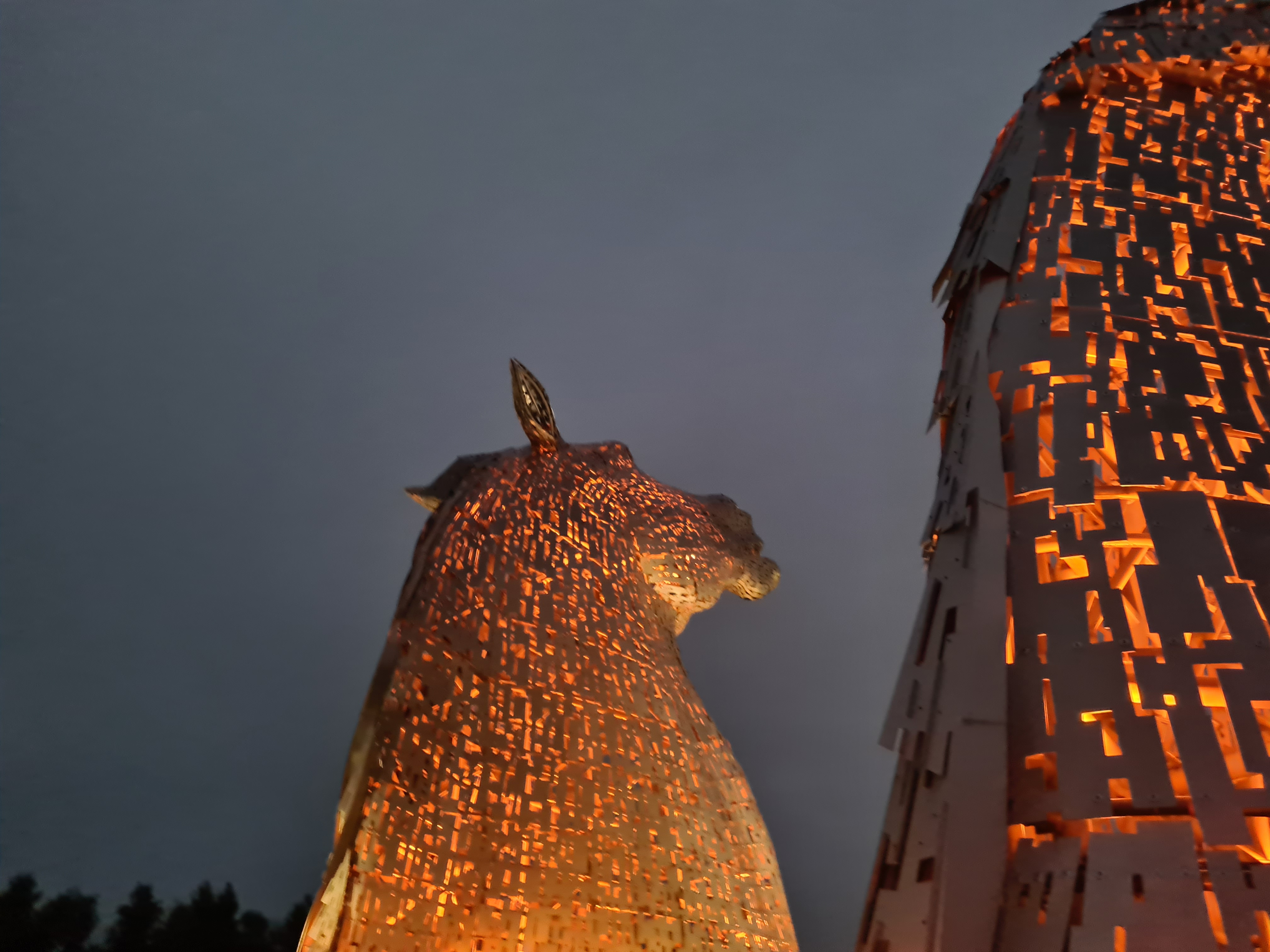 The Kelpies are a bit special. So glad we have stayed so we can see them lit up at night. We'll worth the £5 overnight parking fee.2