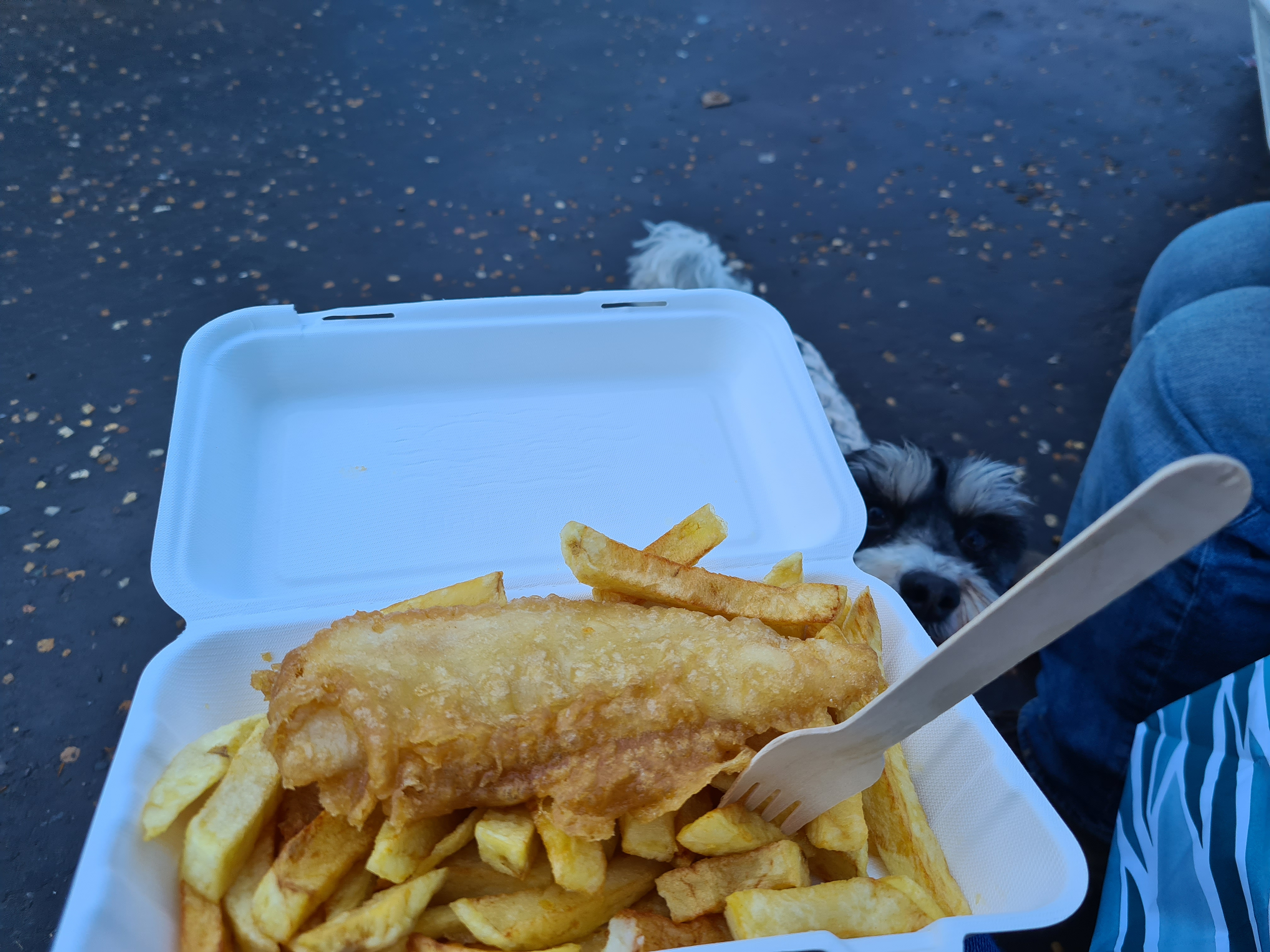 Breakfast and dinner will be from stores but we are eating out for lunch today. Breakfast is a bacon sandwich and dinner later is rib eye steak with garlic and herb sweet potatoes and Stilton green beans. We will grab fish and chips at lunchtime.