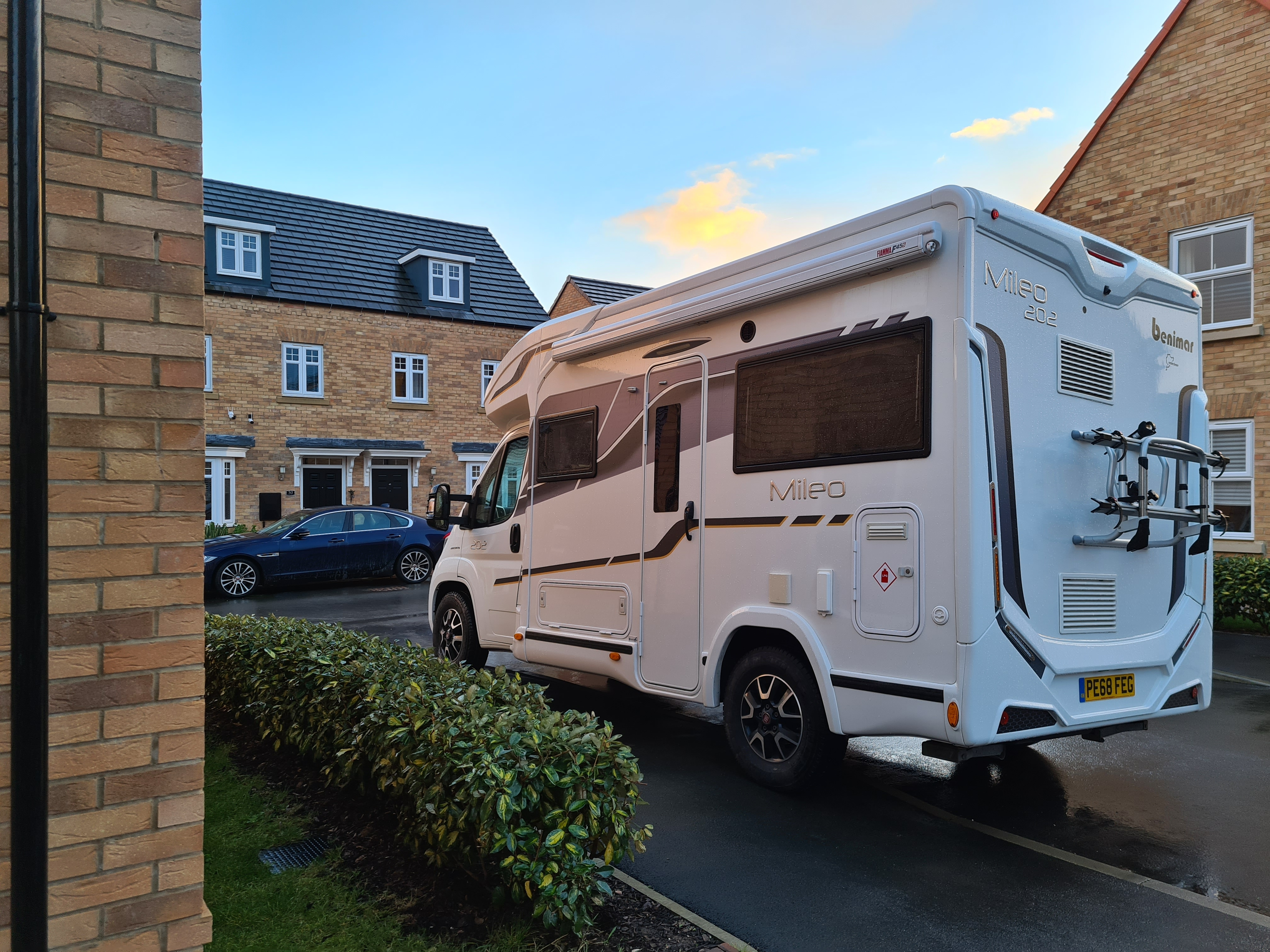 The van is now loaded up and ready to go. We had it straddled across ours and our neighbours drive (with their permission) while the hab check was done, the chap needed access to both sides of the van.