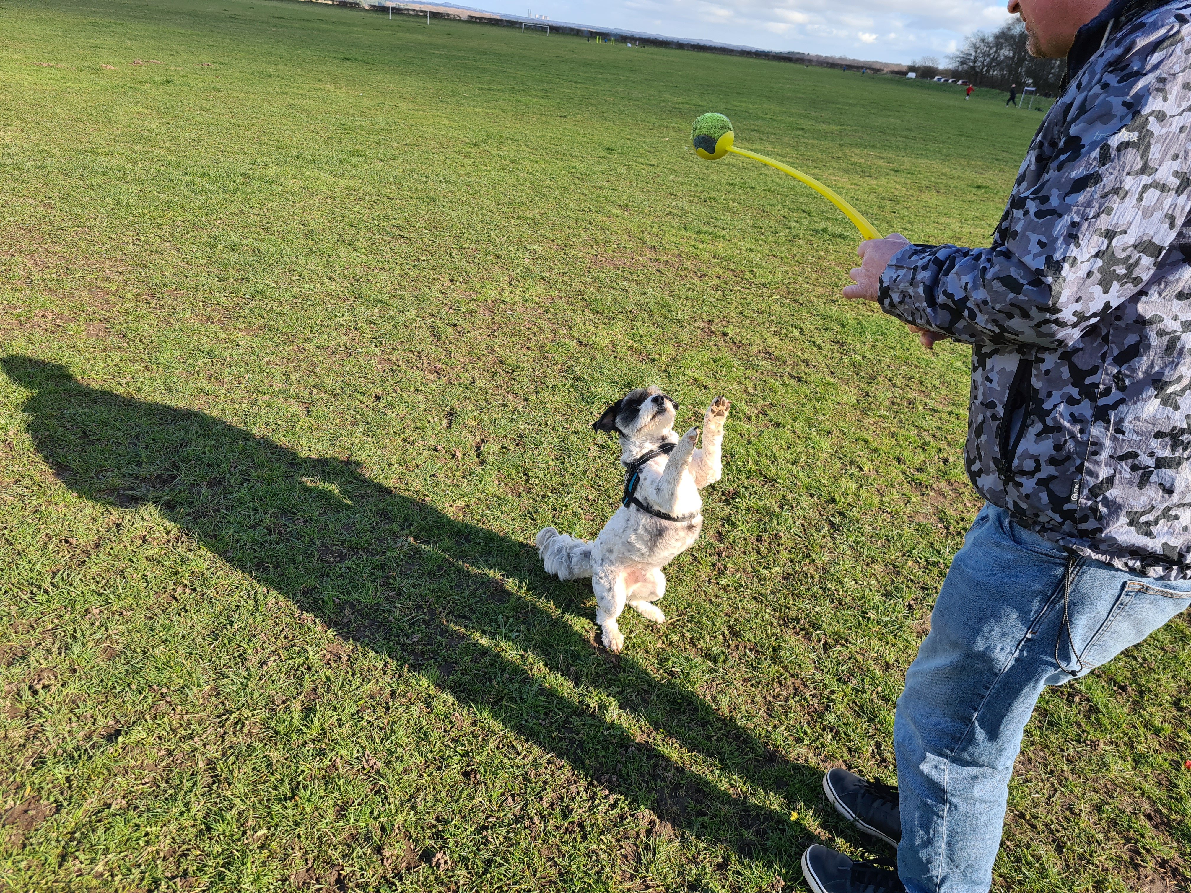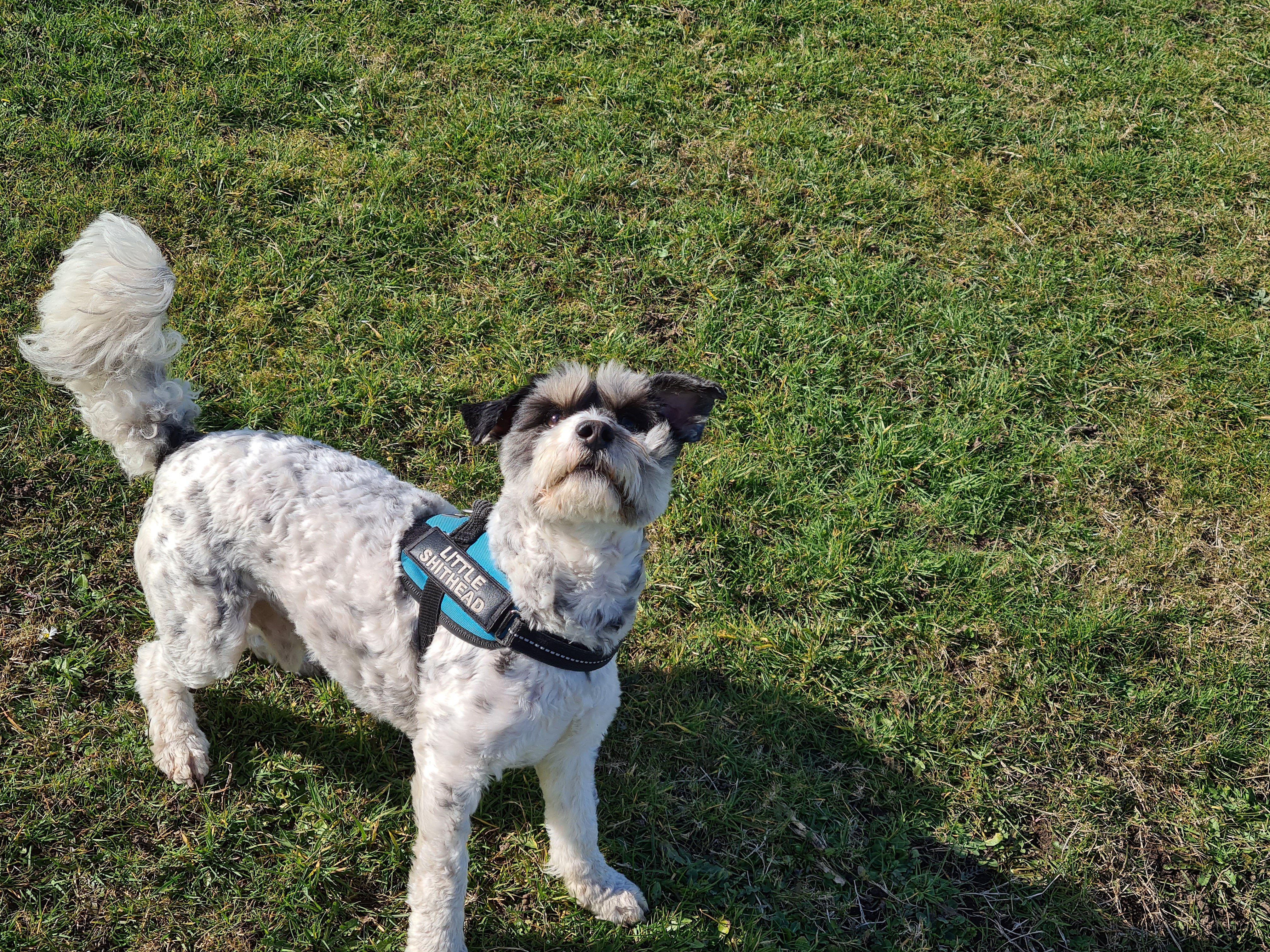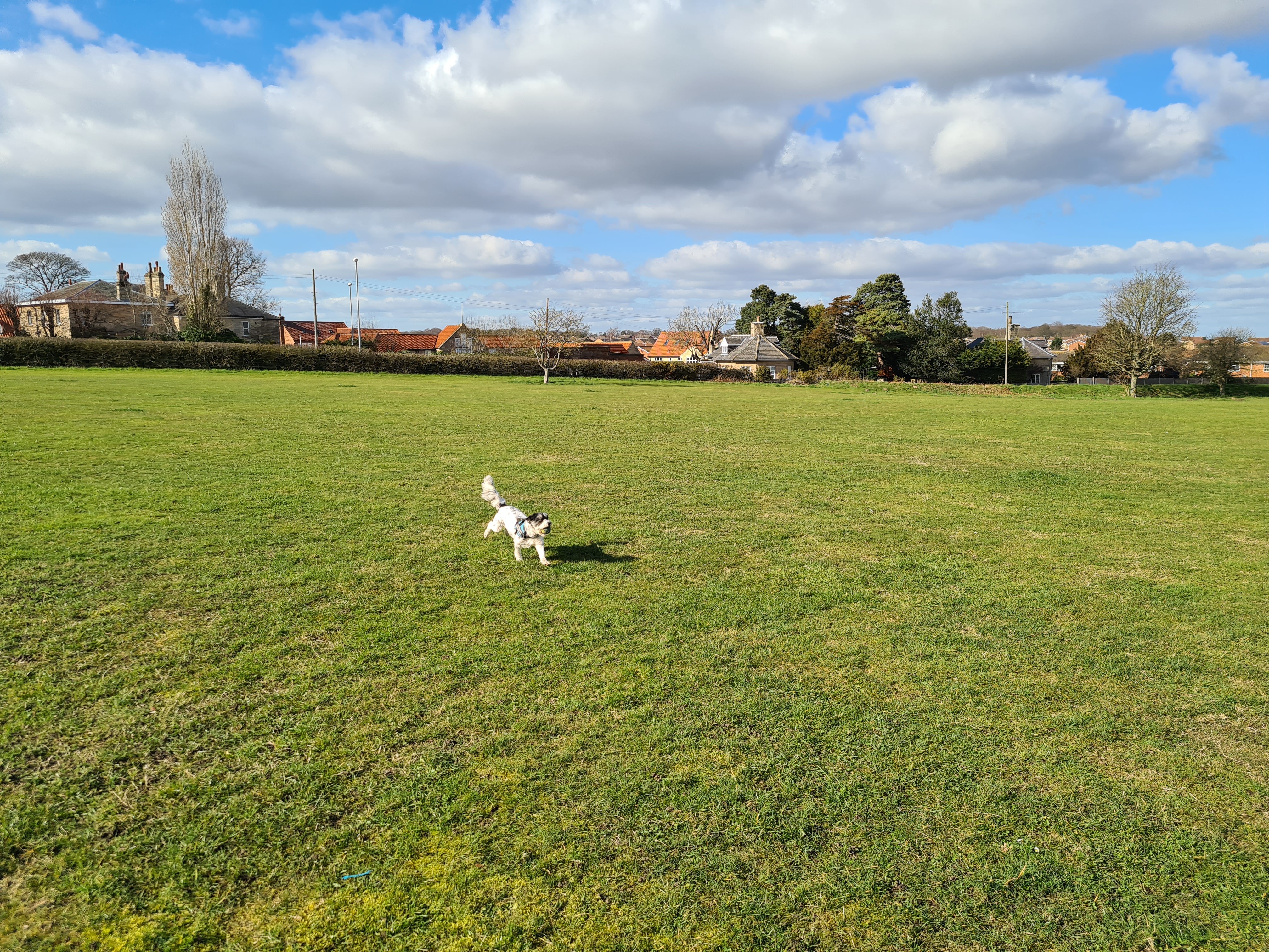 Just got back from taking the dog for a walk at the local golf course. He really enjoyed the sunshine. He has had a bath when we got home and is now fast asleep in his kitchen bed.
