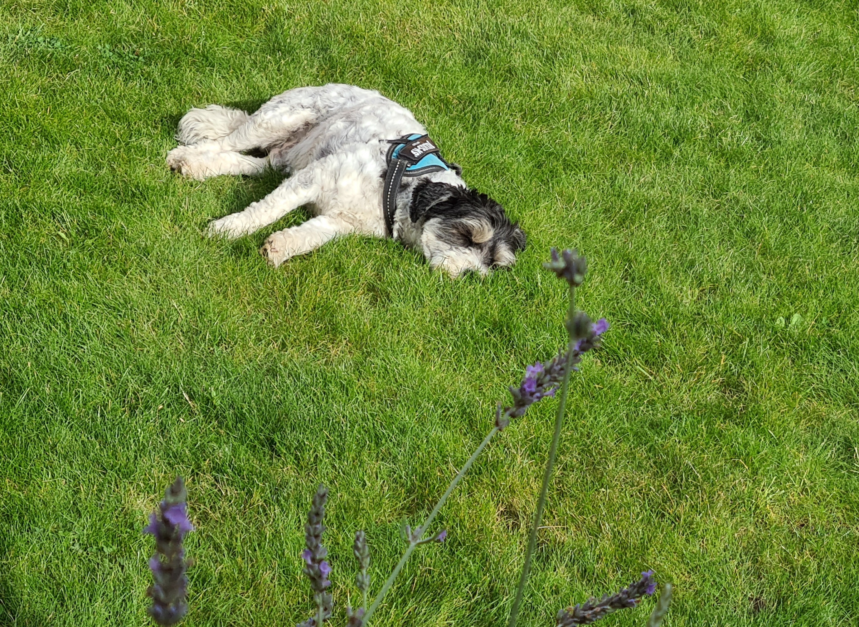 The dog loved his two walks this morning and seeing family. He is shattered now and fast asleep. He will enjoy his roast dinner later.