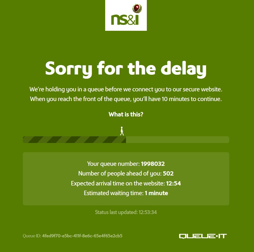 Just had to queue for about 10 mins to get onto NS&i, first time for me!