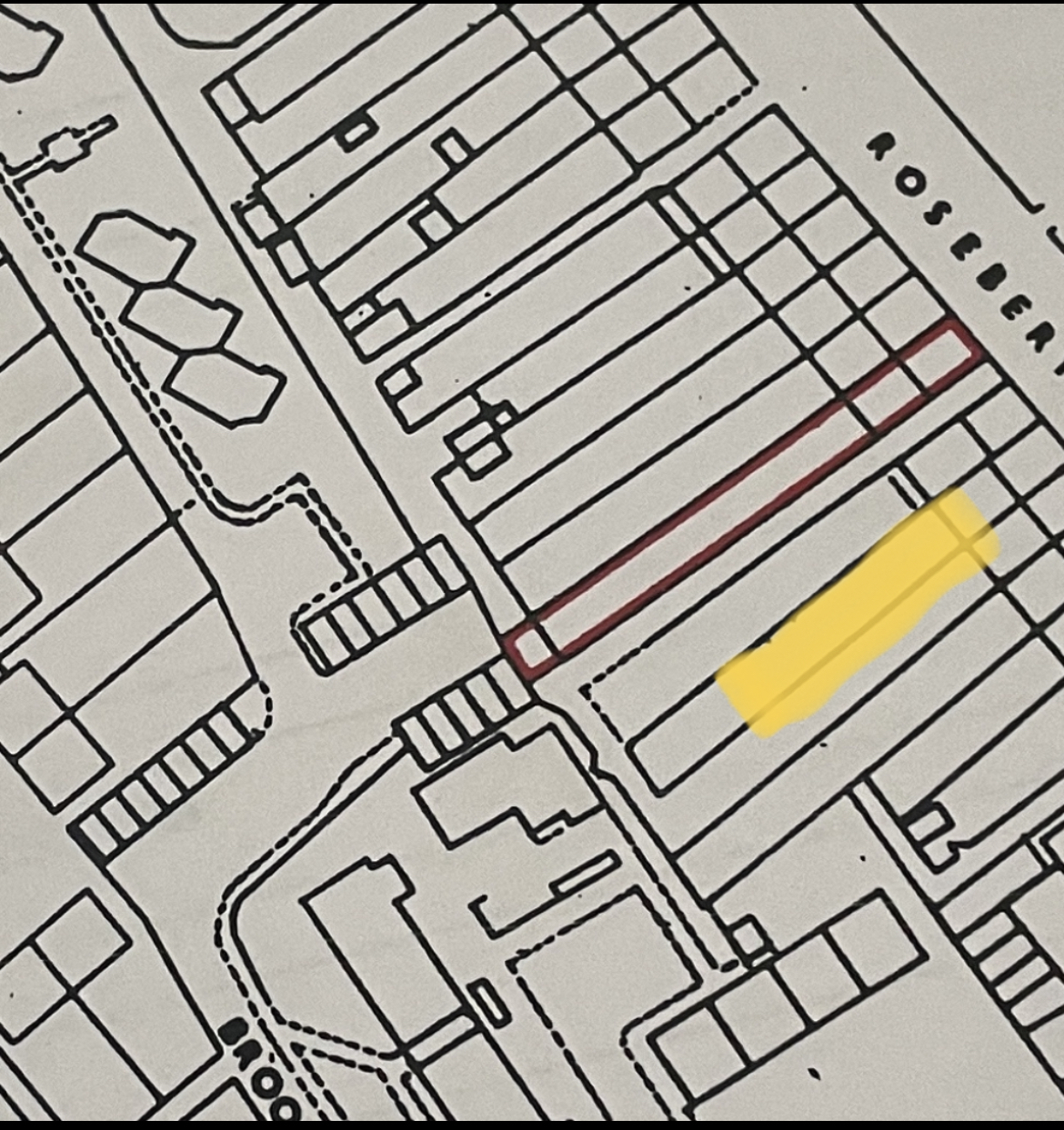 I included two pictures on with the title wording and the other with the map. The neighbour has his fence at the solid line before the red line at the rear and I want to do the same.