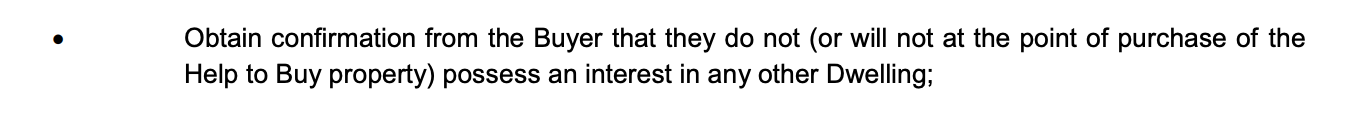 Your solicitor will be required to certify to HCA Target that you won't have an interest in any other dwelling on completion. See page 4 of the Information for Solicitors/Legal Representatives which states the solicitor must do the following