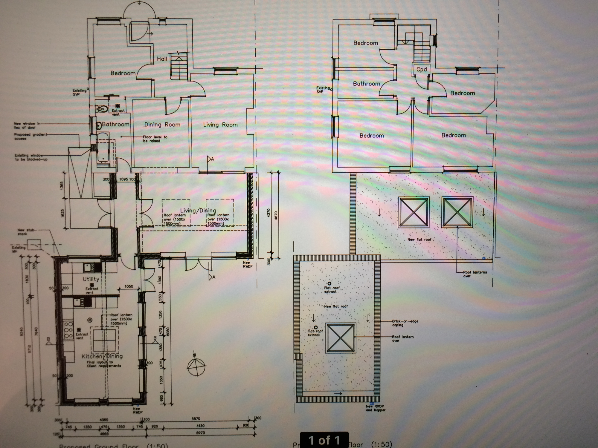 After seeing a post earlier this week about an extension plan I'm going to be brave and put myself out there with my own. My current rear conservator is going to be brought out further and my garage will be knocked down and converted into a kitchen / utility. Both will be built with foundations suitable for a double storey structure. This is an image of a screenshot so I appreciate might not be 100% clear. The footprints of the 2 new extensions will be 8240mm x 4665mm and 4370mm x 7020mm. Its an unconventional plan I know, and there are very specific reasons I want this design.