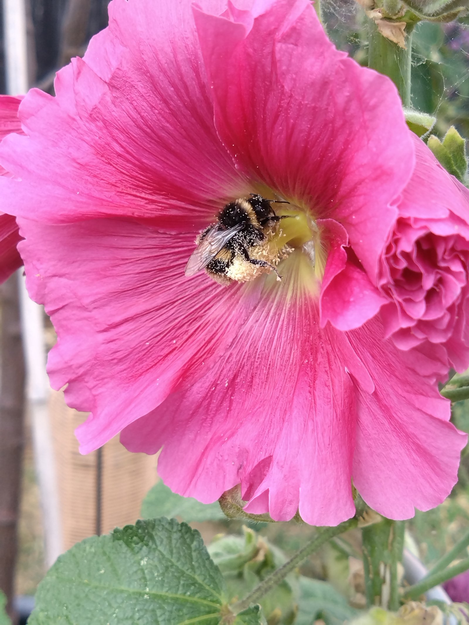 Farway, keeping it in a pot for the moment because the ground at the allotment is an inch of dust on top of two foot of concrete thanks to there being no rain to speak of. It's all dry and cracked, if I put the blackberry in now, it'll be dead without daily watering for a few weeks. And that's assuming I could actually dig a hole. And that's poo about your back.wort, had to laugh at you're only 25 anyway...I did used to chuckle about stuff like that when I was working. Some tiny person would come and say, let's try this, and we'd say, yes, we tried that several tiems before, doesn't work, and they say, let's try it anyway. Didn't work. It only did work when they took the time to learn first, then suggest stuff that was relevant and practical.And apparently the Jersey Tiger Moth is very famous nowSunny here so far, I'll be taking a trip to the allotment to get rid of some of the stuff I pruned into the ded hedge, I'll take a photo but it's quite small and full of planks so far [ wot I did acquire from another allotment holder], because wood is wood as long as it's plain wood.]And I took this last week, the most polleny bee I've seen...