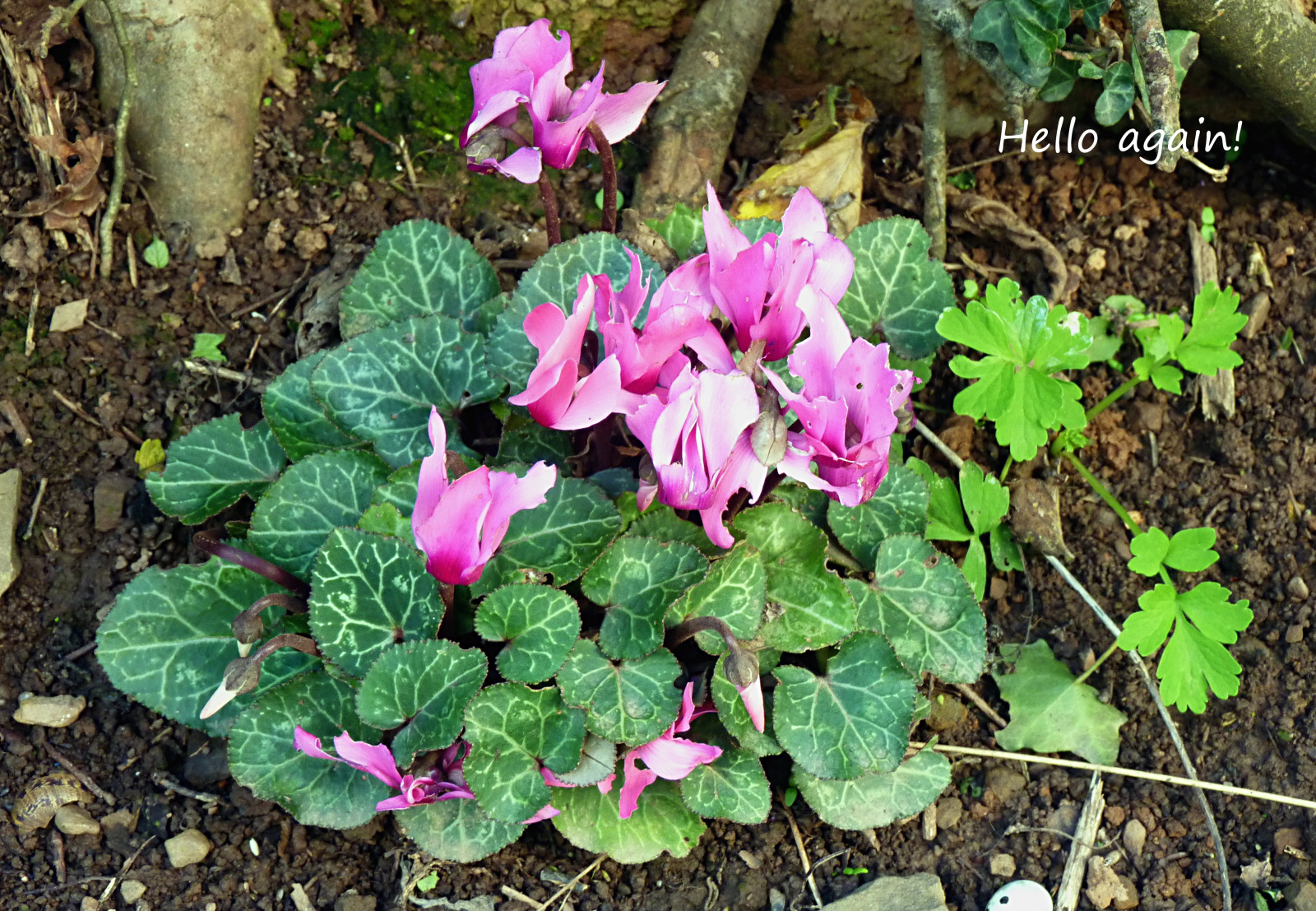 Lovely cyclamen, Dusty. My wee pot that I bought from HB a couple of years ago didn't survive. I'll have to buy some more, because I do like them. The plants that I bought to make the front garden look pretty have gone a bit mad. I was hoping they'd stay low, but they've got long offshoots now and look a bit messy. I'm not too bothered though because they're still flowering and I'm definitely not a Hyacinth Bouquet type of garden (or house) person