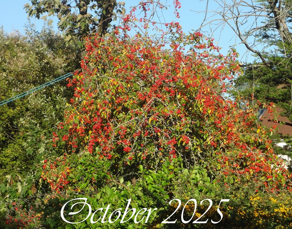 Back lawn needs mowing, done some clearing but seems back has come out in sympathy with the leg so it's all a bit random.I'm waiting on the woodlice toms to ripen just a tad more, get them at the top so to speakMy nice neighbour has mown my grass, again, I need to do abbit more clearing now the wheelie is empty, but like you, dictated by back allowing it or not.Going to try a photo, it's a crab apple, a few doors down, but looking grand in the sunshineBottom right, yellow berries are some of my pyracantha, waiting for the birds to get hungry enough