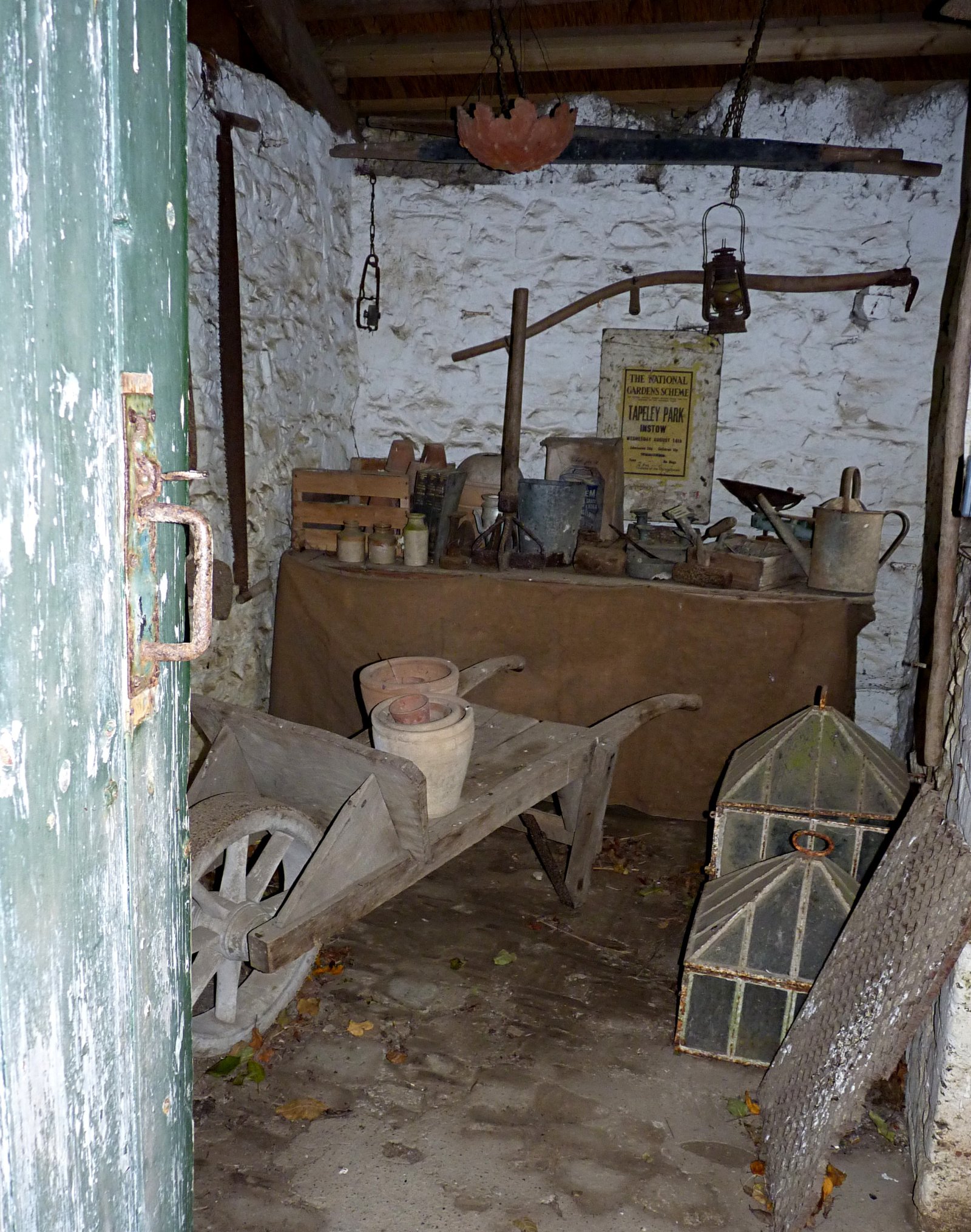 From then on, it was 'Spot the usual features.' We ticked off formal gardens with statues and pool, dog kennels, ice house, folly, and walled kitchen garden, all of them intact but either under-maintained, or not interactive enough. For example, we weren't allowed entry to the glasshouses and other buildings, though I sneaked past a 'no entry' sign to get this shot of a display, now apparently off-limits:Staff were still using the room next door for potting up etc, but we saw no staff. We felt the place was being run on a shoestring budget, probably from necessity, but it was still interesting. Only half the walled kitchen garden area was planted with crops. There is also a permaculture garden, which we didn't see. We chose to visit the Memorial viewpoint instead.More to follow, including the 'baby elephant' and some hedgehog news.OT: Grey, chilly and windless. Drunks got 2 out of 3.They say sunny intervals.Just say, "No!"4 -