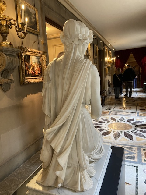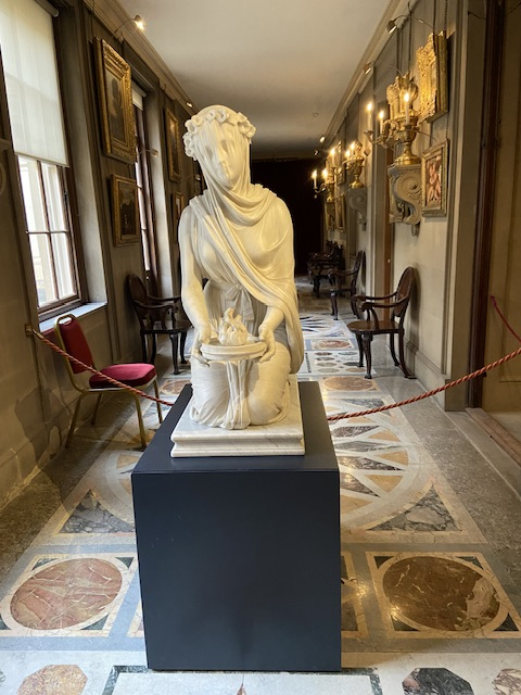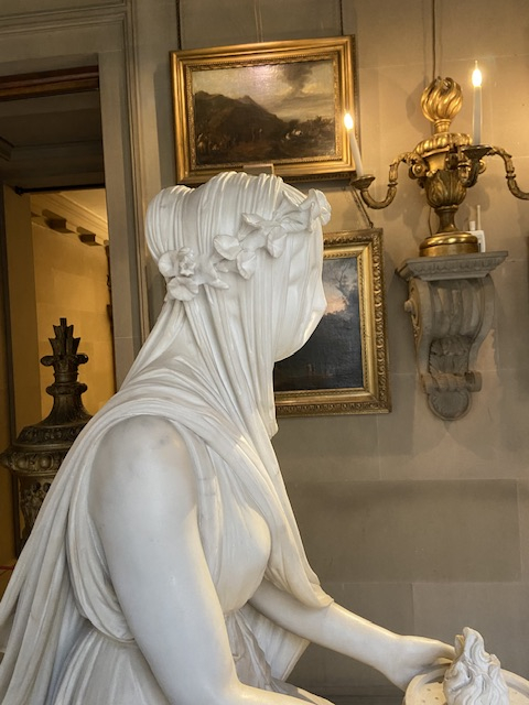 She's holding a flame cos she's based on a Vestal Virgin - like what they dug up in Pompeii etc - so the 5th (6th?) Duke had her made after he got back from his Grand Tour. She really is worth going to see, my pictures don't do her justice. There's an aura about her, very peaceful and cool, like you get when you step into a church.