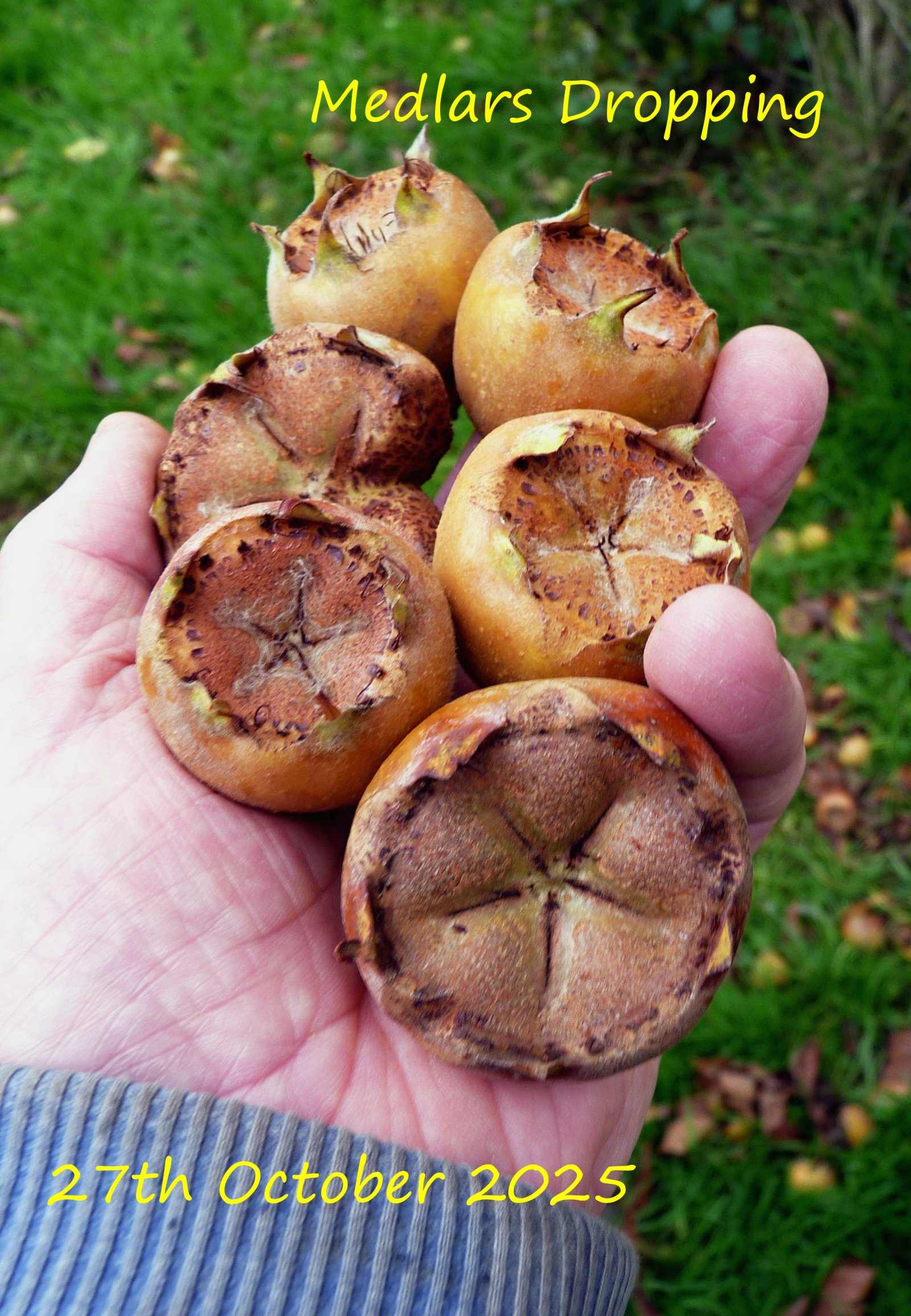 They're dropping like...err....medlars, right now, so they're ripe enough, but far from 'bletted.' Although time's short, if I get a good haul, I'll see if friends nearby want them. They sometimes make medlar jelly. It's an acquired taste!