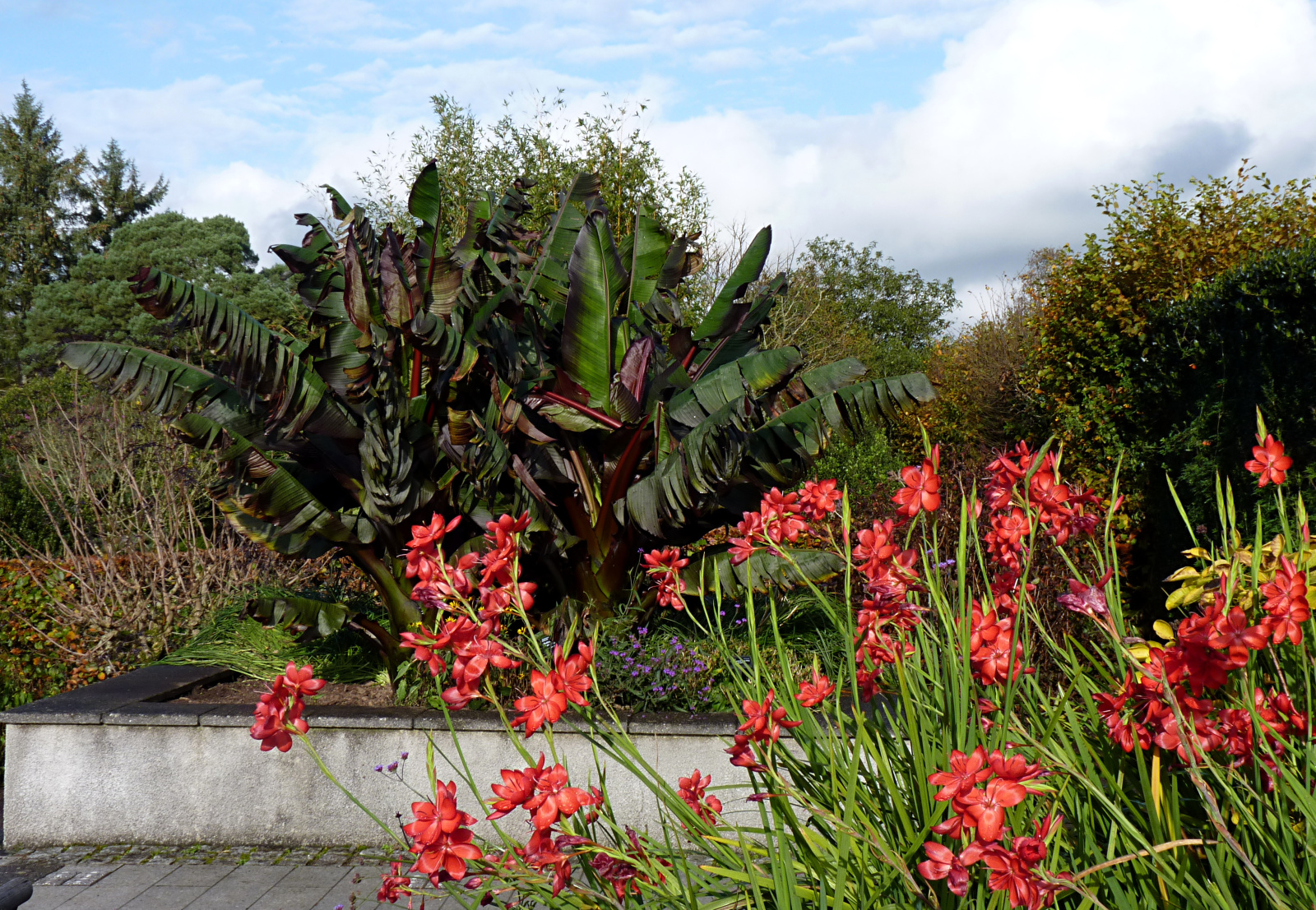So, while life in the Westcountry remains semi-tropical, today I'll give you Hesperantha coccinea 'Major' above the Hot Garden, twinned with a big Banana.