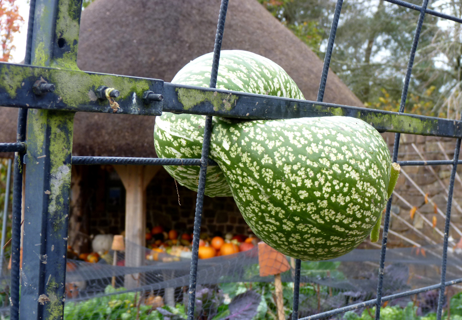 Remaining with veg, here are the Fig Leaved Gourds (Shark Fin Melons) harvested at Rosemoor last week. If you look carefully, you'll see there's a real person within the shelter, as well as its usual resident. I didn't know that when I took the photo.Sometimes, even the best plans don't quite work out!