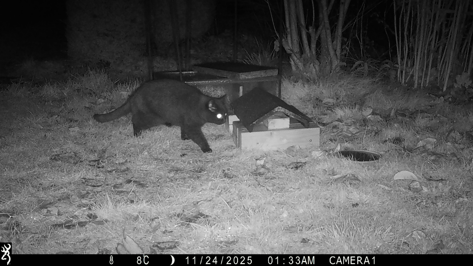 The new labyrinth we constructed yesterday managed to defeat 3 cats, but Five Spot (the hedgehog) failed to appear.