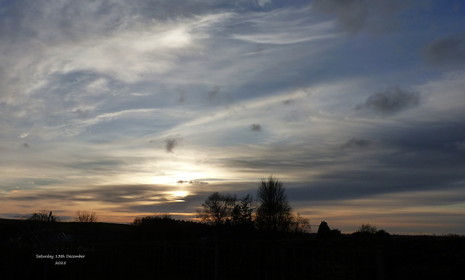 Our weather this morning is breezy and cloudy after a mild calm, and sunny, Saturday. This was sunset last night as the clouds began to drift in: