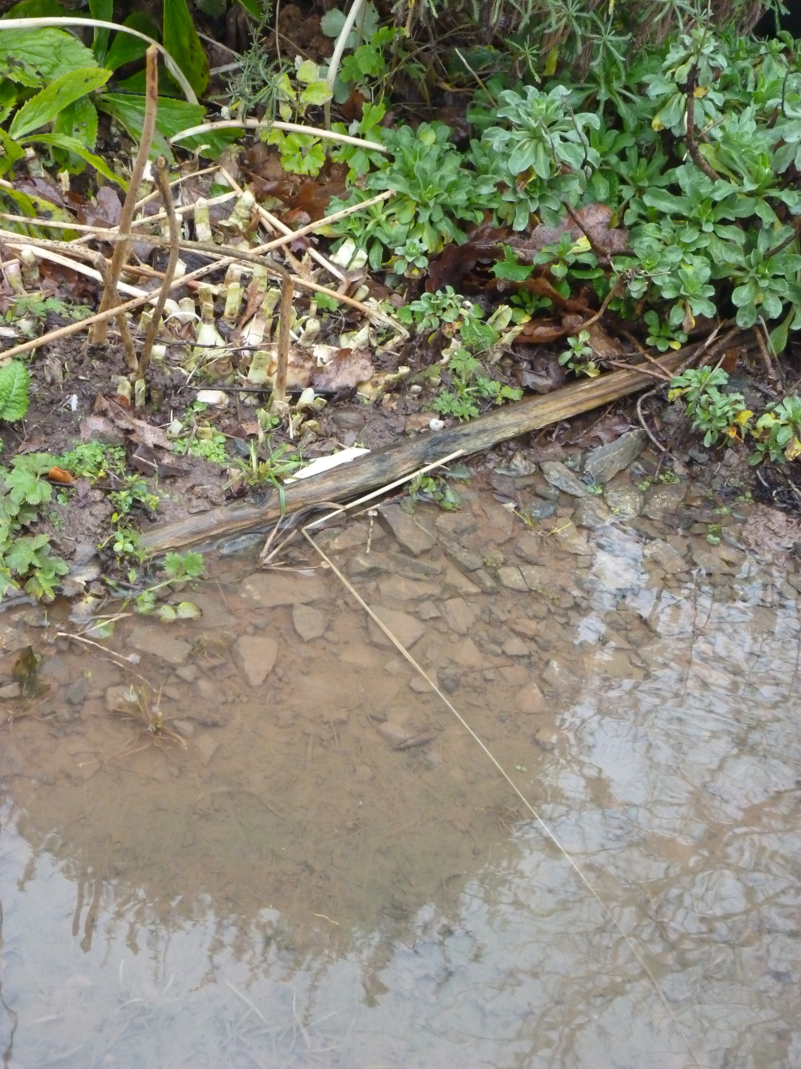 Yesterday, right plant, right place. Today wrong plants, wrong place but they don't care.The bulbs of Nerines, and Erigeron glaucus, happily bathing. They're supposed to like dry conditions. Much of the water had drained away by the time I took the photo. They've been doing this for many years.It was the colour of the rose that attracted me, the others were bog standard red or baby pink, this one stood out from the crowdThe AI trout, hopefully safe from AI herons. I have seen the real trout in the river Test that flows through Mottisfont Abbey, looking just like the AI ones, and they seem Heron proof, at least in that areaThe tale of the long glass icicle, sounds a bit like tales from A & E, or the Little Britain skit when MP explaining how all his clothes fell off when he slipped on a glace cherry in a men's toilet