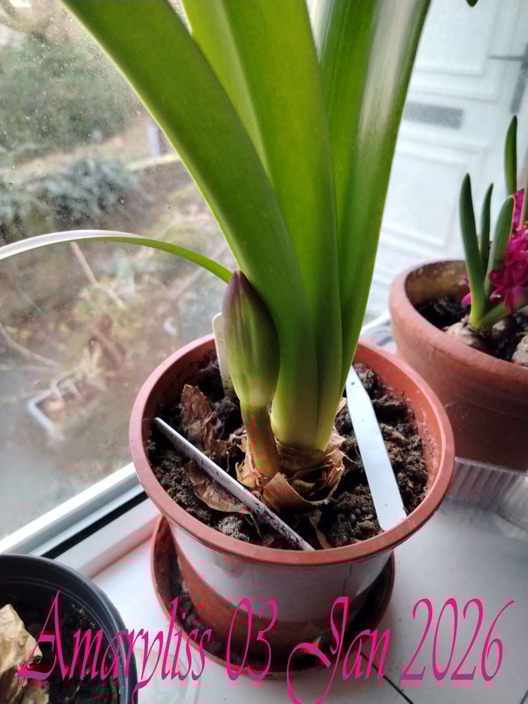 I think it was James Wong, when growing up in Malaysia? who wanted to grow dandelions when young, for the same reason we want to grow orchids, bananas, rubber plants etcNo gardening today, again, frozen solid and too coldBut, ta ra, my amaryllis has got a flower spike on the way!With guest appearance of the hyacinths in the background