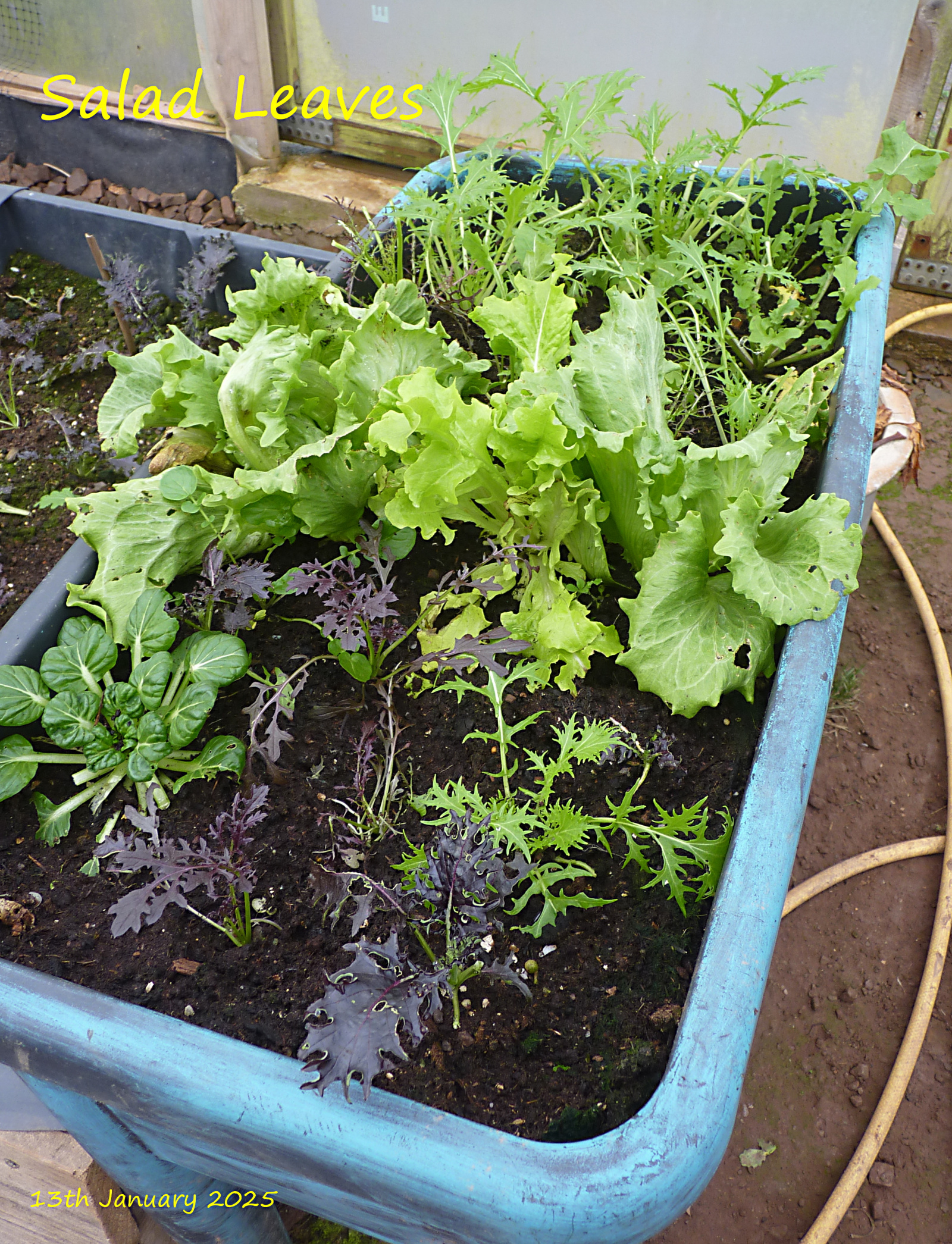 here) We've finished everything bought for New Year, and the polytunnel isn't keeping up with our need for fresh greens etc. Here's some growing-on:
