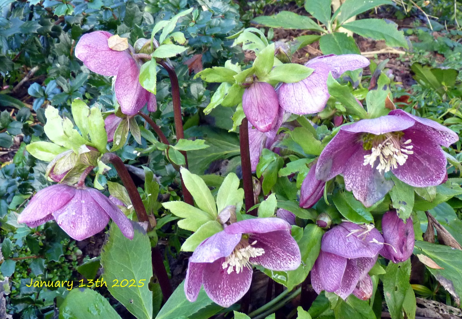 Here is a hellebore I found a few days ago in a sheltered, sunny place. I don't know why I wasn't expecting it, but it came as a shock.