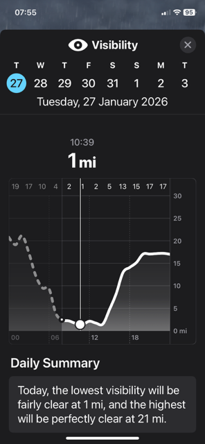I've never seen visibility down to 1 mile (this is from my forecast) -