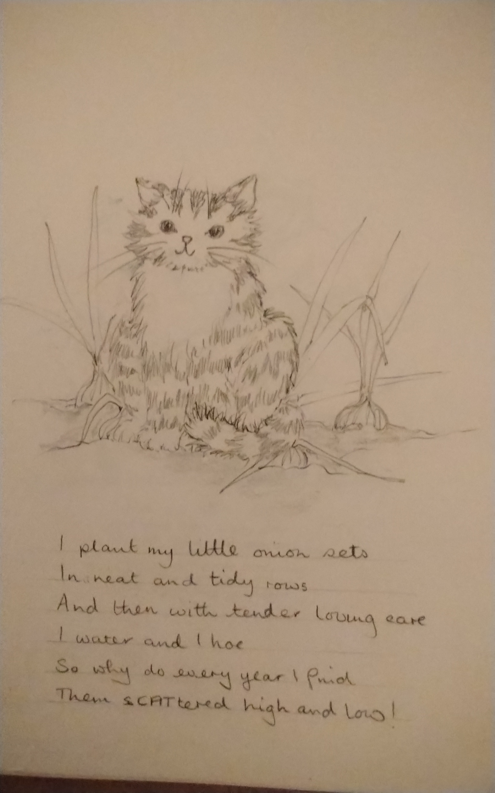 The garden is a mess thanks to the birds getting moss off the roof and digging over the flower beds but no hope of getting out there so here's a little thing I found when looking through my sketches with a gardening poem of mine.