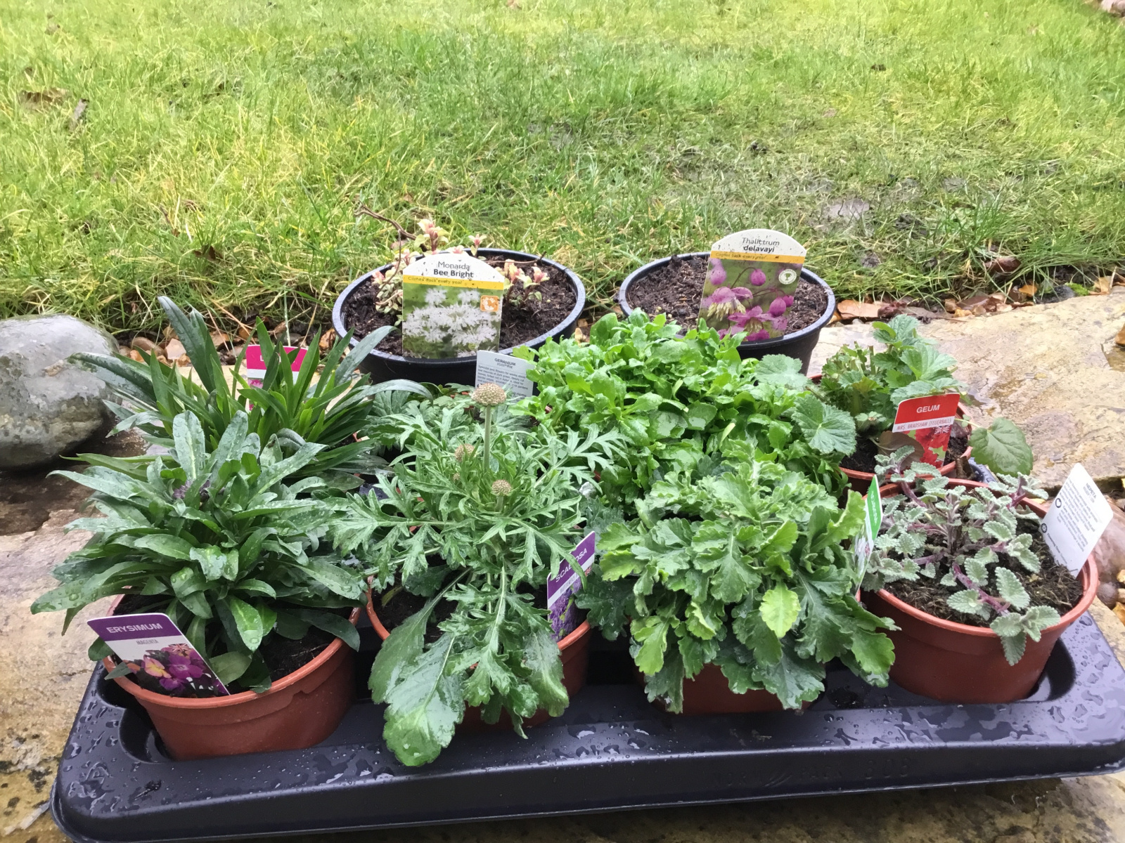 Dsis took me to the nursery, got these and 3 bags of compost and a large pot for DDs rose. It was sunny but as soon as we got home it rained. I’ve potted up the rose. But looks like rain set in.