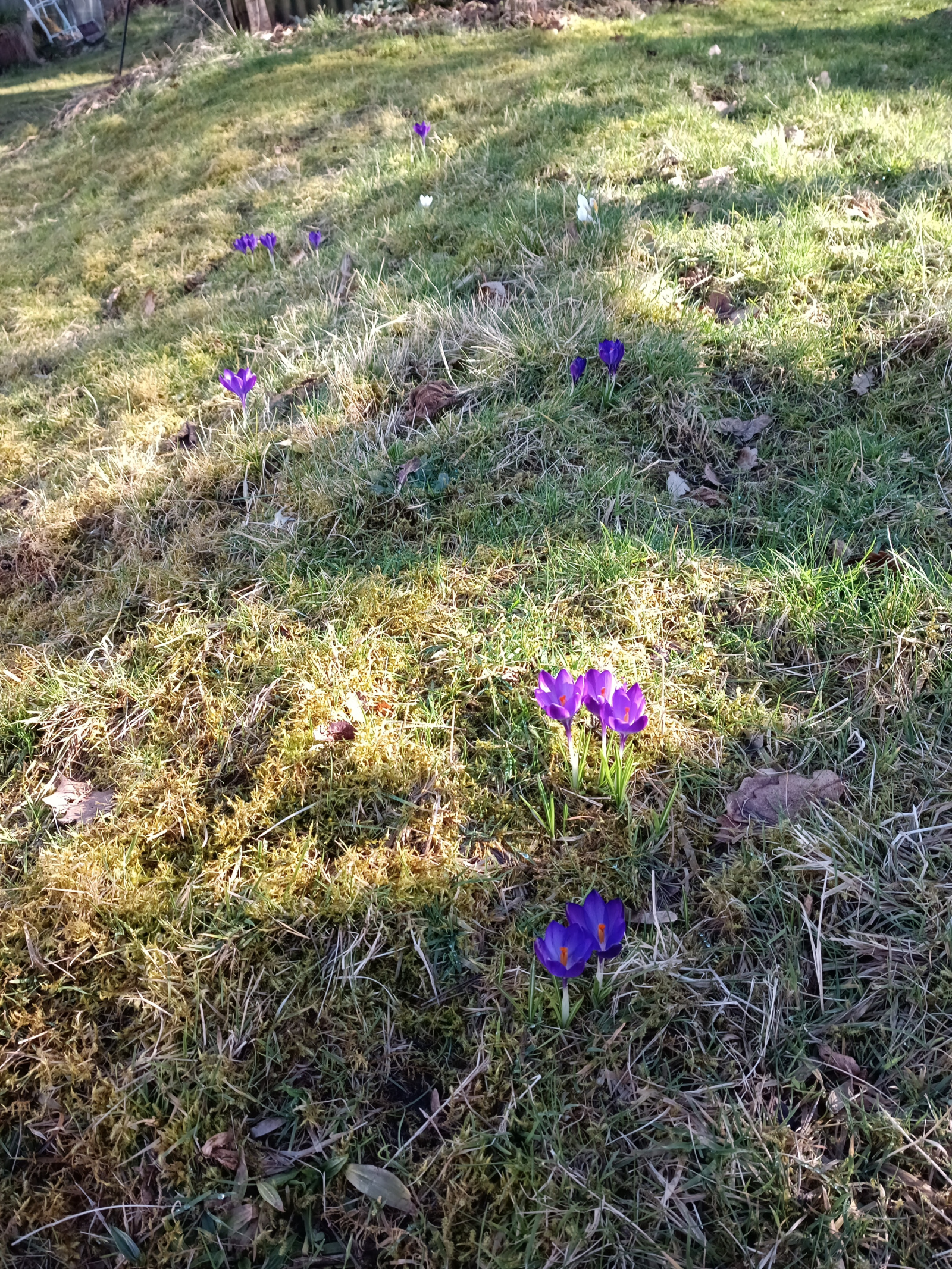 A good sunny day here, at last the crocuses opened, but, as predicted the first, yellow, ones had faded by the time the purples have appeared… used to be a much better display (on the few occasions they displayed), seem to be going the way of Pandora🫤