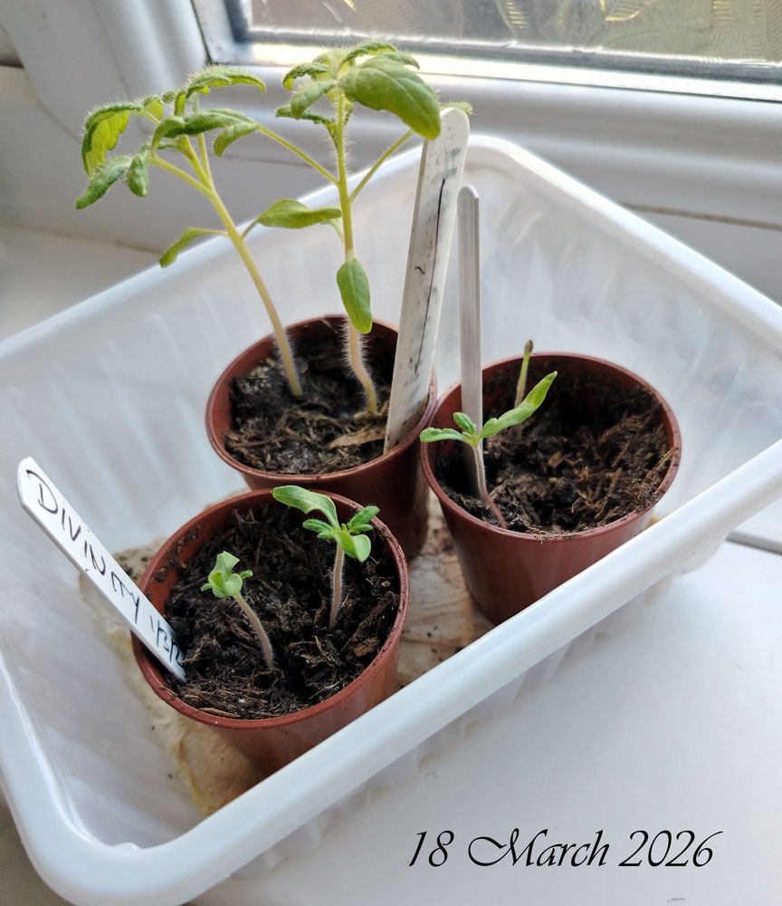 Not much to report about the glorious weather yesterday. I had to fetch chicken food and other items from the farmer's store, but sowed more seed, potted -on and whizzed around on the mower first. That meant I was too late to visit the GC on the way home. 😖