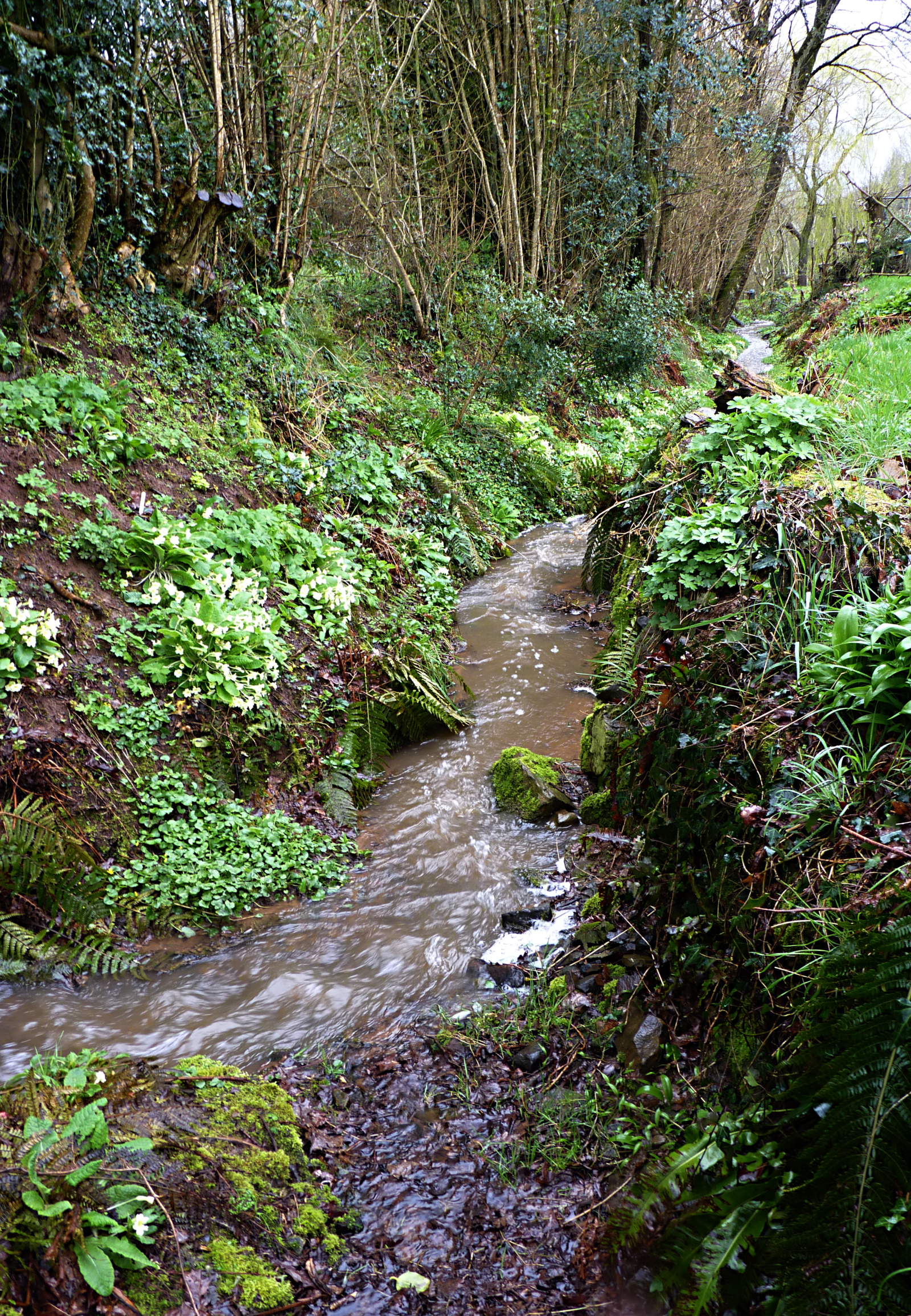 Another lovely day in prospect. I'm clean out of photos, so here is an old one of the stream at this time of year, but before Mr C's barrage etc. The primroses didn't show-up well, so I'll try for another this year.