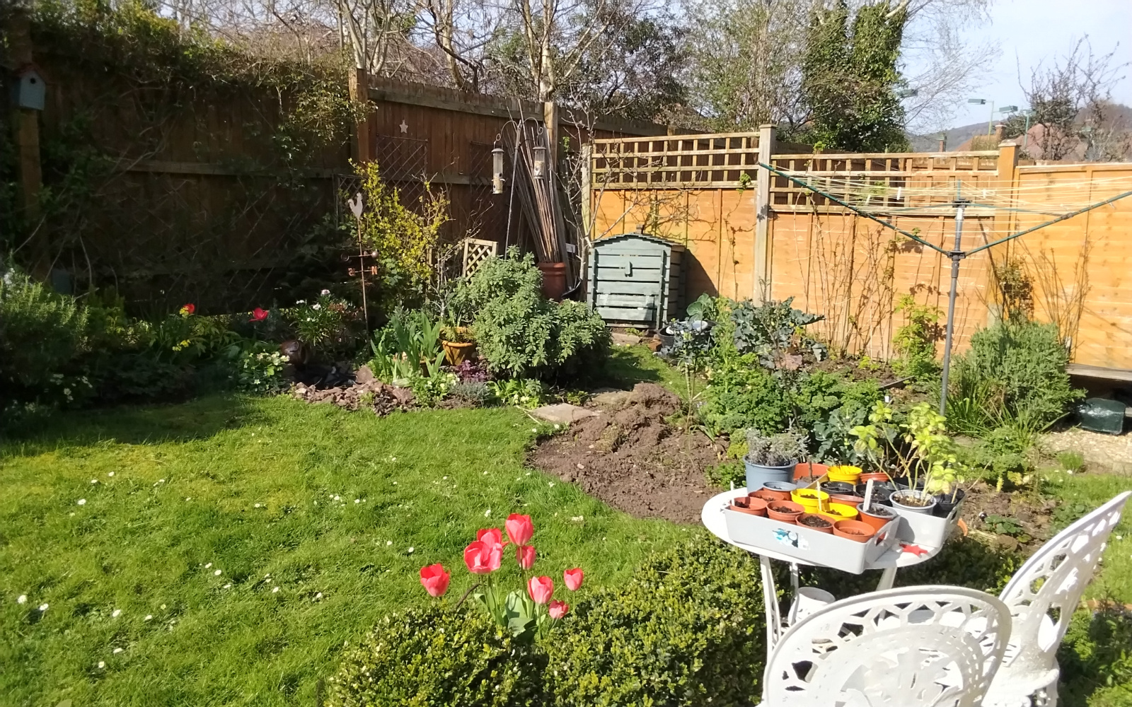 Got the bird table cleaned (more weird mould under the legs) and painted with stuff, the compost heap box now properly green and it stinks. Rat? or rotting food? Hope it's not a rotting rat 😯