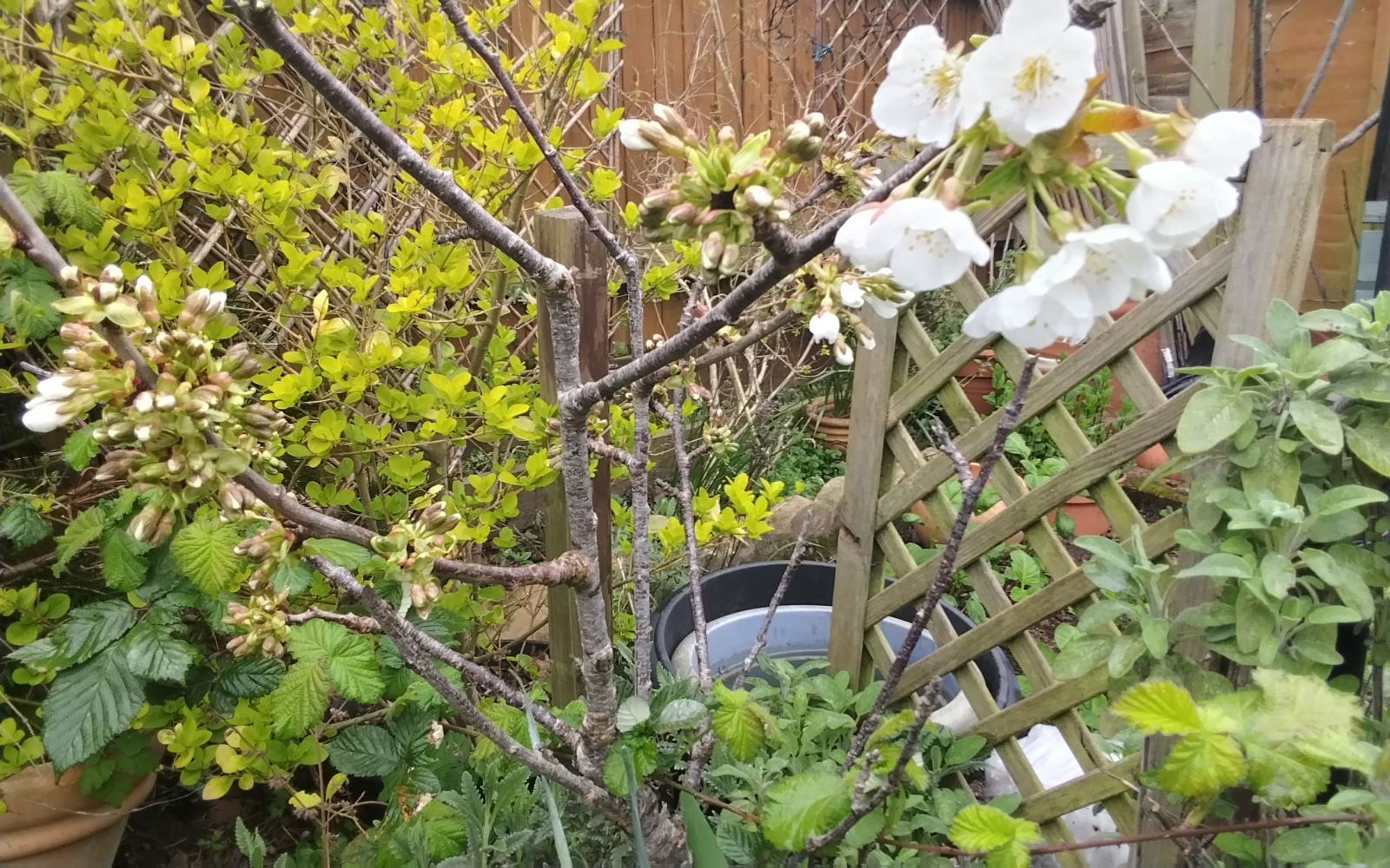 My dwarf cherry is looking magnificent and promising. Mind a long way to go yet.