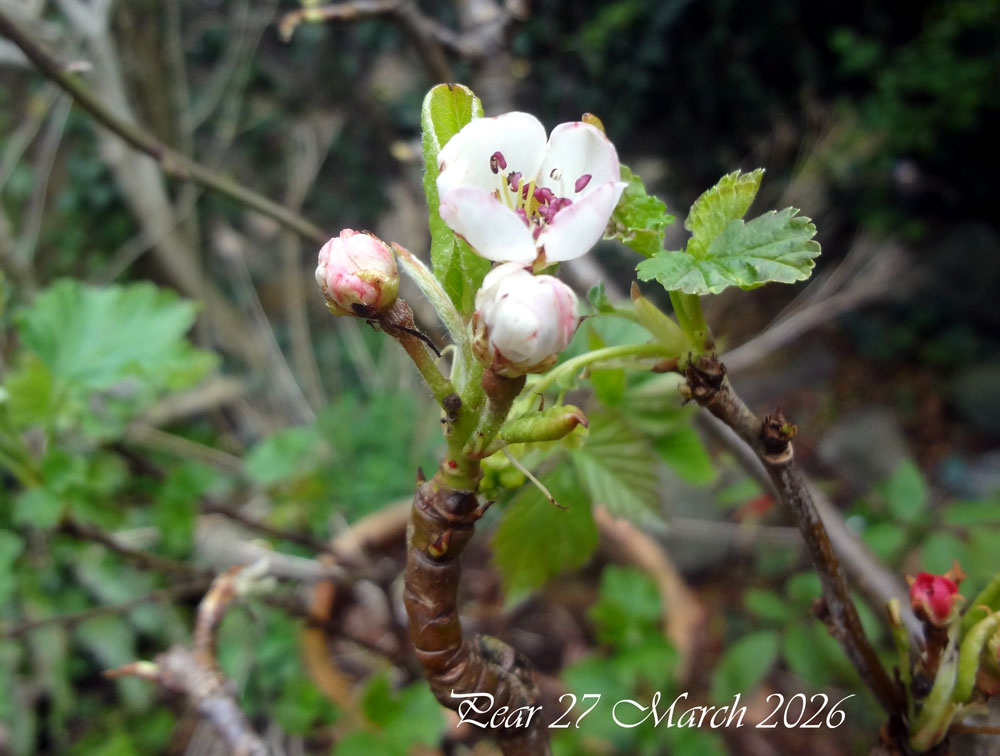 And from yesterday - had been checking for flowers on fruit bushes having seen Farway's goosegog pic - mine just showing flower buds, nothing yet on any of the currants, but this was the biggest surprise - looks like it might be a bumper Jostaberry year - last one with anything to speak of was 2019!