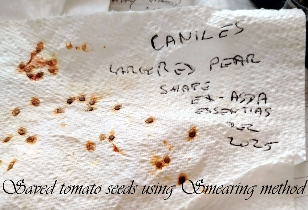 Seed smear, really easy & foolproof.You will see lots of Tomato seed saving methods, experts ferment in water for about a week, until it pongs, rinse, dry & store