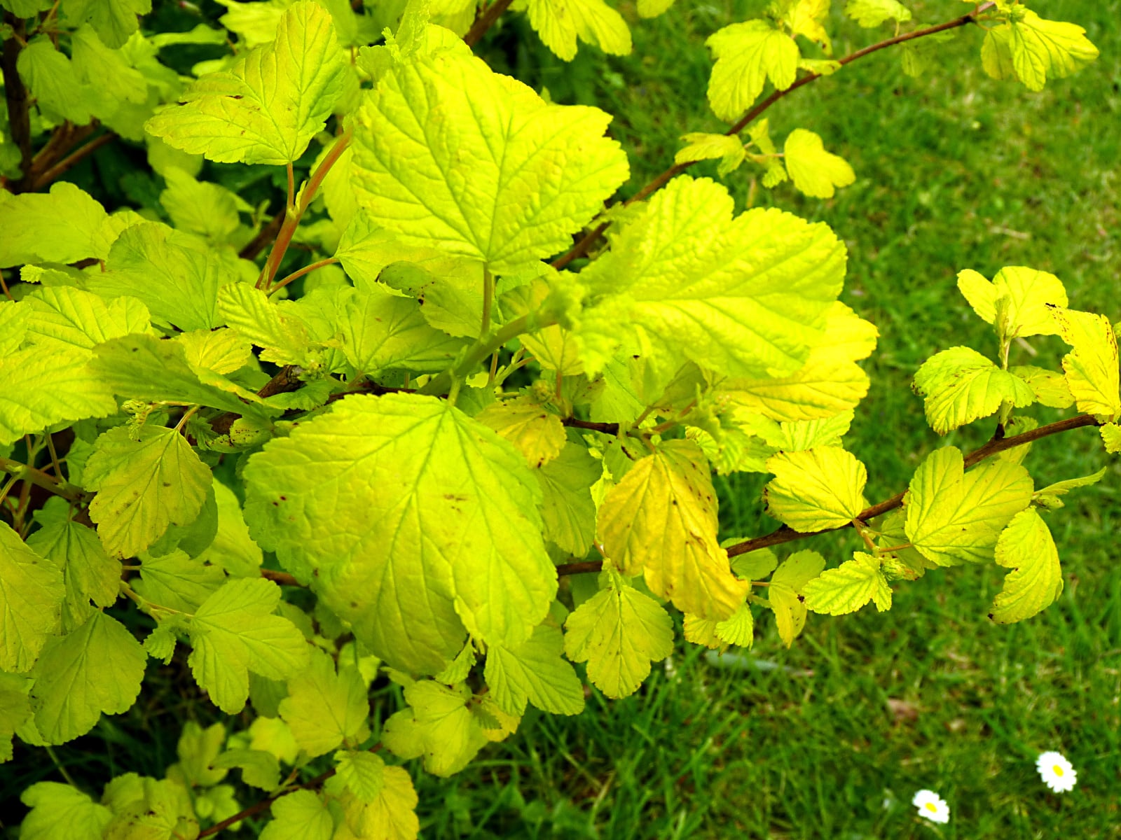 Outdoors, the usual flowering plants are now making things more cheerful, but for a change, I'll feature a shrub grown mainly for foliage, Physocarpus 'Dart's Gold.'