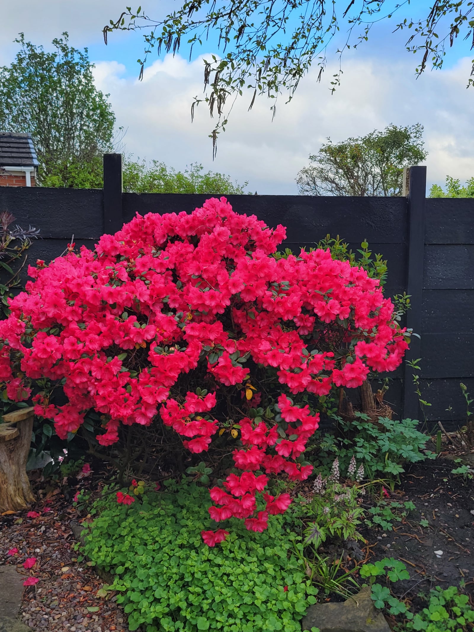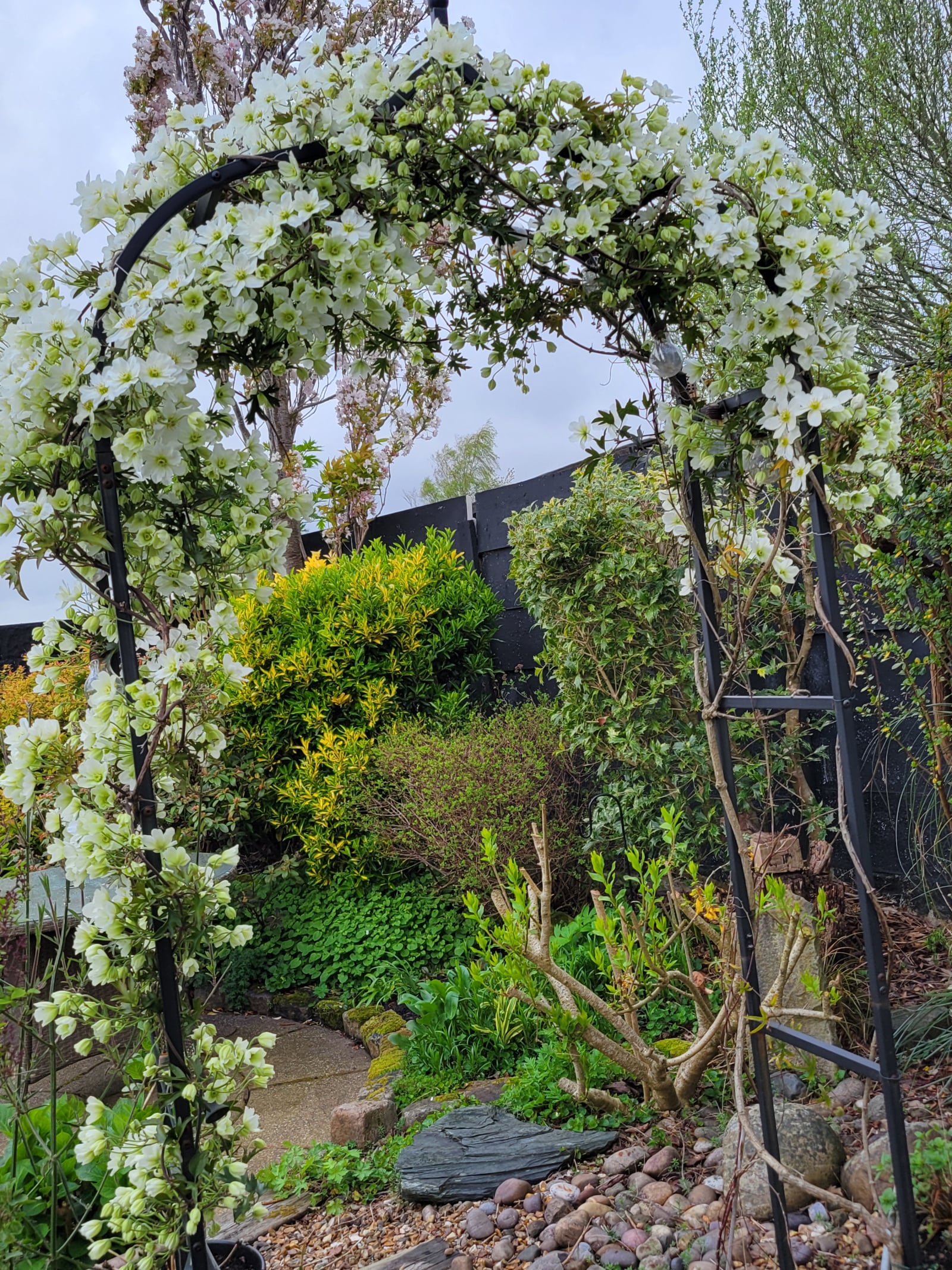 Quick pic from garden this morning. Just through the arch you can see the scalped forsythia.