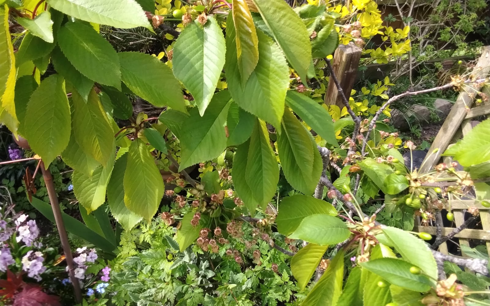But I can give you cherries. The brown bits are the flowers on the end of cherries and whole sprays of them on the right 😀