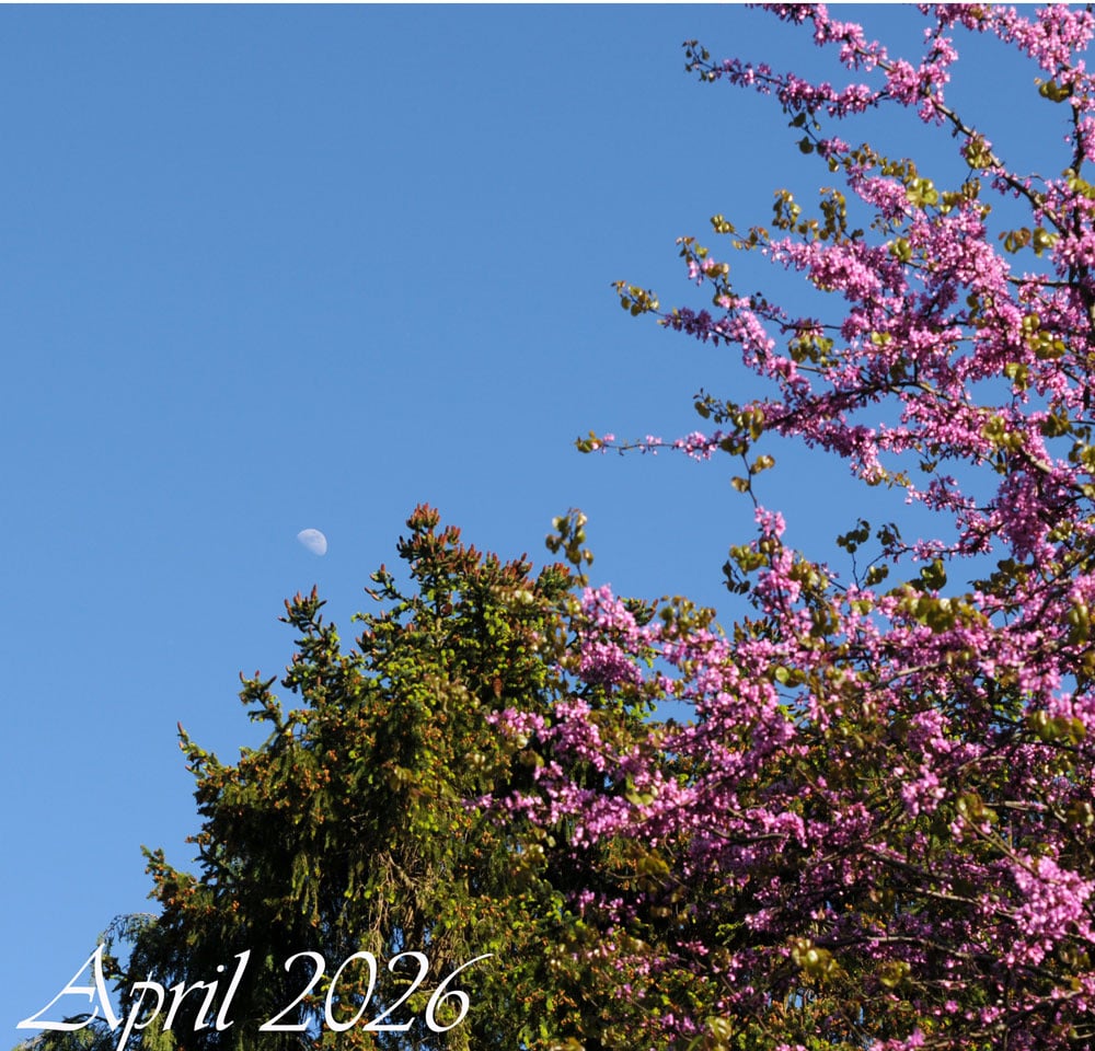Now then, now then 😈 Here's moon taken with an old camera yesterday, includes my Judas tree, which is it's best year ever due to a week of sun & decent weather, without winds ripping the blossom off
