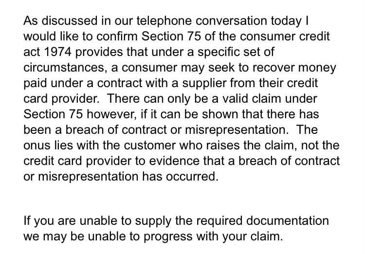 As Tesco want the T/C and they will most likely not go any further without them, which is fair given what S75 is based on. Your only option is to lodge a complaint and see where it goes. If they will not settle/resolve then it will go to FOS to rule on. In due course.Website also states 12 months warranty but when I originally brought this up with the company they stated it did not include the glass but were unwilling to give me a copy of the warranty. There is no links on their website it’s just a banner at the top of the page.0 -