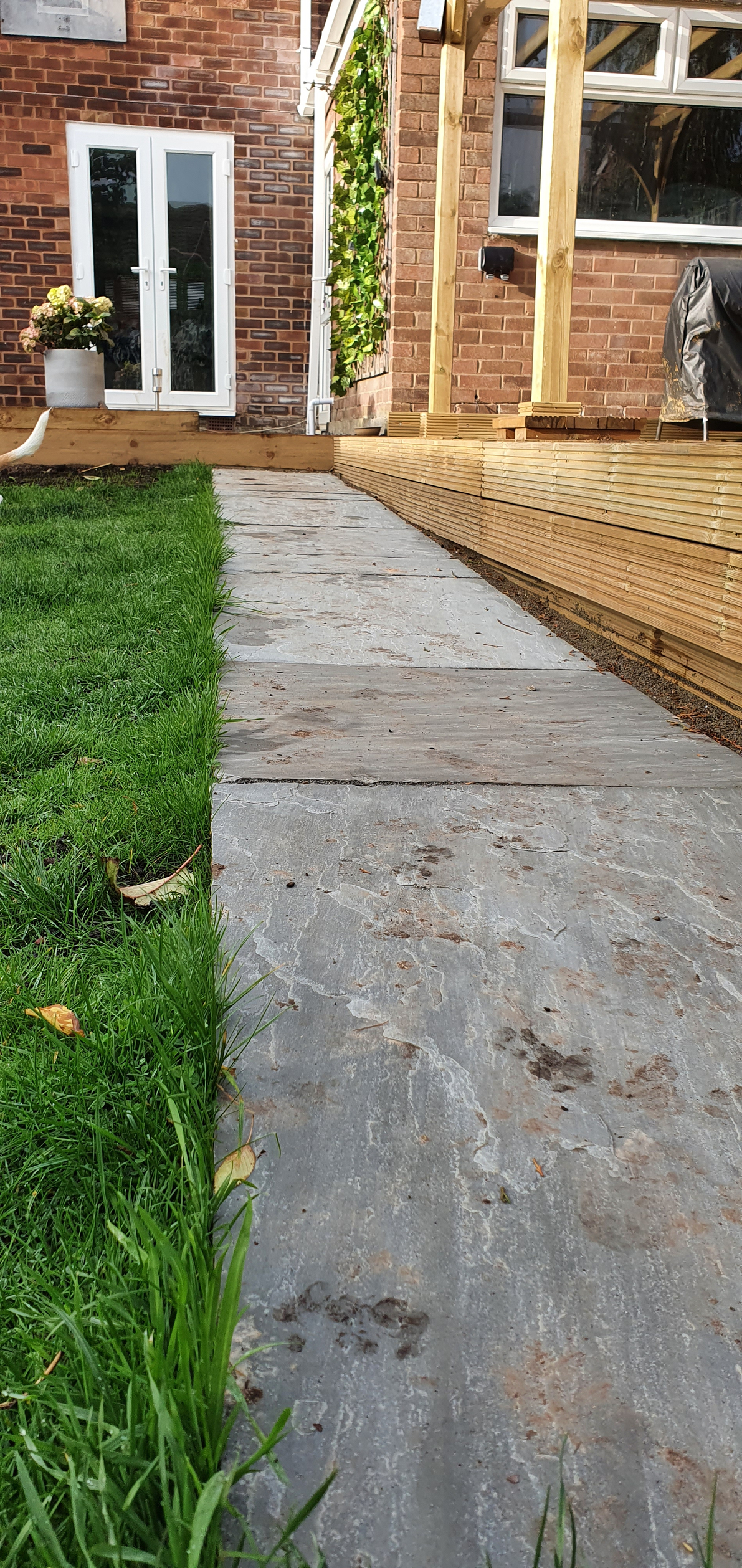 A very good resource for all things paving - https://www.pavingexpert.com/bpvseq01Once your concrete had been removed, a check should have been made to see how deep the hardcore layer was - If there was any doubt as to the suitability, it should have been dug out and a new layer put down & compacted.The slabs forming the pathway have been poorly laid. No attention paid to the gaps, and a haphazard gradient.