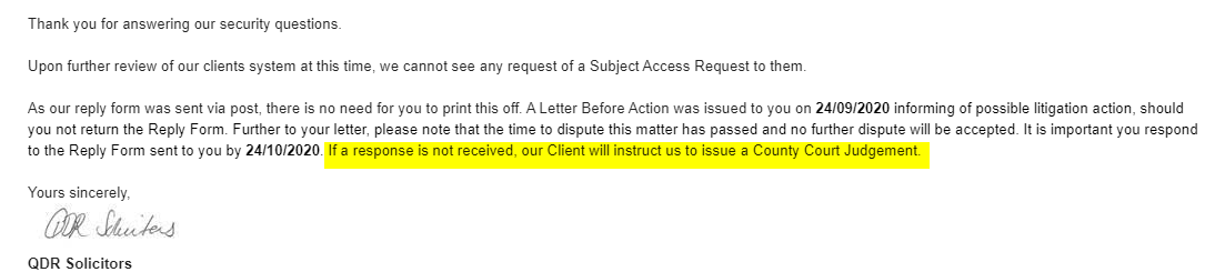 Because coupon they are called QDR, part of Wright Hassall and the scam called WHOPLACoupon-mad said:Why is a firm of solicitors misleading a litigant in person by saying that they can just apply for a CCJ?