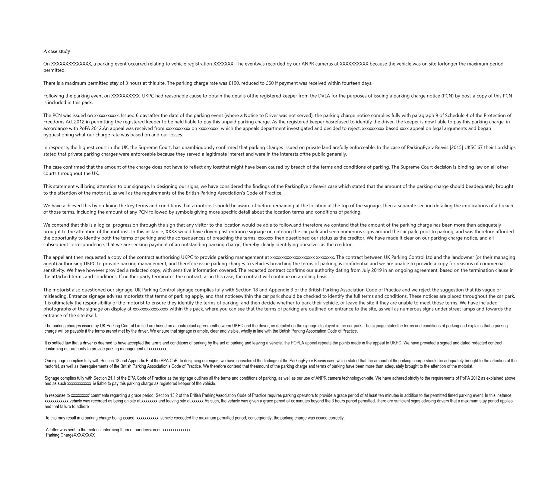 OK, as you did a thorough POPLA appeal I assume you don't want to add anything to it, any more evidence?PRIVATE 'PCN'? DON'T PAY BUT DON'T IGNORE IT (except N.Ireland).