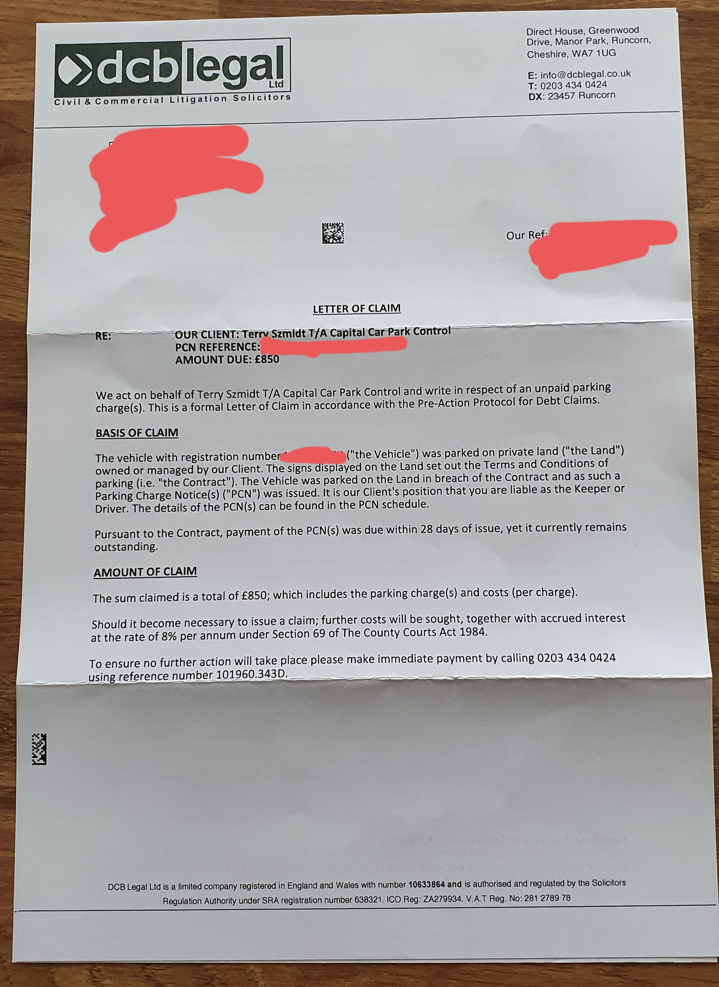 7 months later and I have another LOC from DCBLegal acting on behalf of Terry Szmidt T/A Capital Car Park Control.