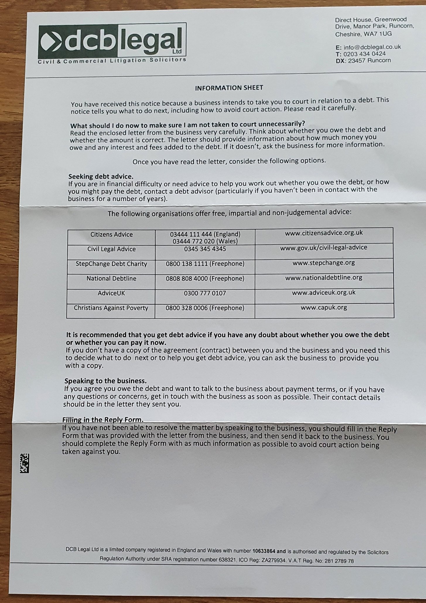 So, out of interest, because my situation is remarkably similar, does this mean that we're back to the usual situation of waiting for them to file the claim and then putting forward a defence? Perhaps I can contact dcb legal or my MP in the meantime. but there is no question that this acts against any of the rules or laws associated with PPCs or selling on debt etc? Cheers.nosferatu1001 said:Blackdog