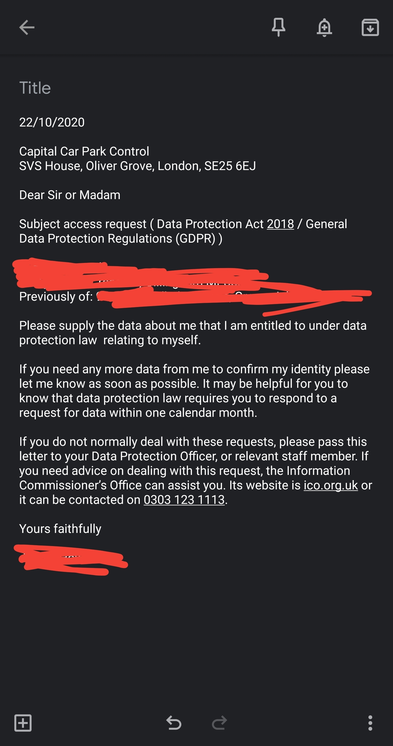 Your query can be submitted directly to our Privacy Team by writing to us at Capital Car Park Control, SVS House, Oliver Grove, London, SE25 6EJ"