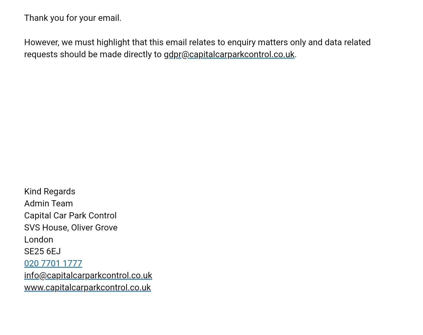 Although my SAR request clearly stated to pass the email onto the Data Protection Officer, they sent this: