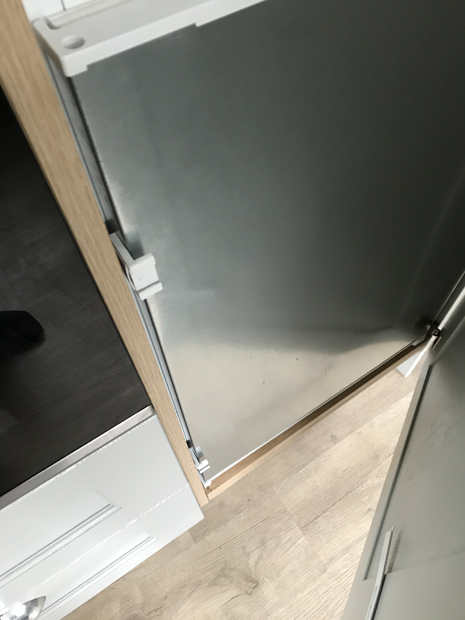 Have an integrated Bosch fridge freezer and the freezer section the outer door keeps pulling away from the freezer door. It’s held in place by sliding plastic clips. To be fair the force required to open the freezer door is quite high and it’s not helped by the knob on the outer door being high, so creating a moment.