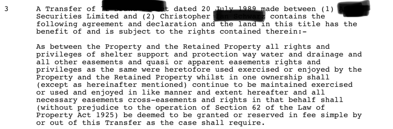 I am hoping somebody can help me. I am due to exchange and complete on a property imminently but I have been questioning my solicitor over a paragraph I found within the title deeds of the property and I still don’t have a clear, satisfactory answer. Please could you take a look at the paragraph below and let me know what it means?